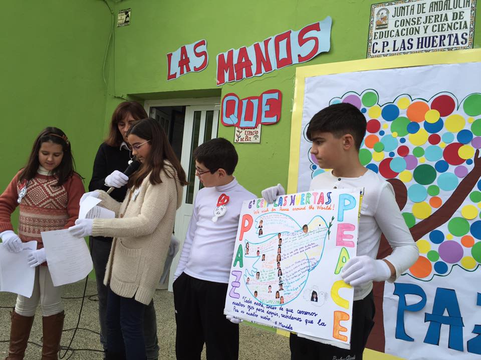 Los centros educativos de la localidad conjugan sus mensajes de paz con la educación. Como hecho extraordinario, el CEIP Tartessos ha dado transmitido mensajes en inglés después de su inclusión como centro bilingüe.