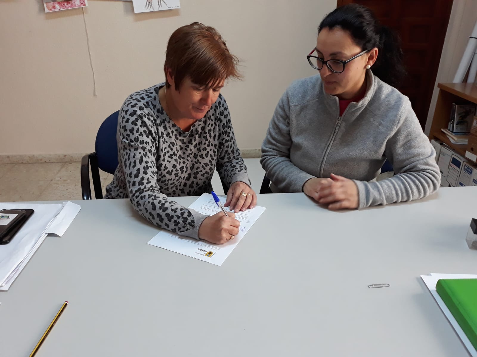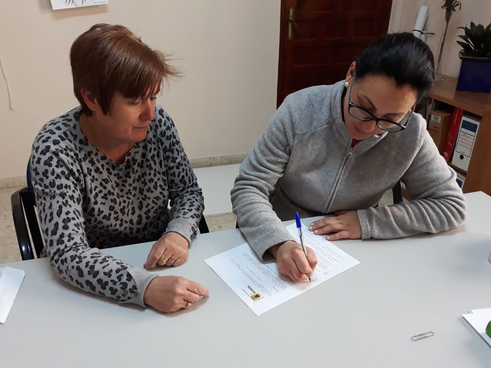 Mª Jesús Calzado, presidenta del AMPA junto a Dolores Gordillo, Concejala de educación, han realizado la firma de este convenio que evitará que el alumnado y profesorado se vean afectados por el calor o el frío, dentro de las aulas. Esta reforma, comenzó hace dos años, cuando la antigua directiva del AMPA inició las labores pertinentes de aislamiento de los conductos de tuberías y Split, llevando a cabo también la instalación de parte de los desagües.