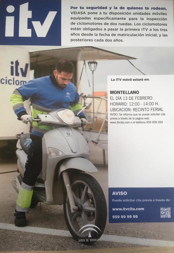 Informamos que mañana miércoles 13 de febrero estará disponible para los vecinos y vecinas de Montellano el servicio de ITV móvil para Ciclomotores.