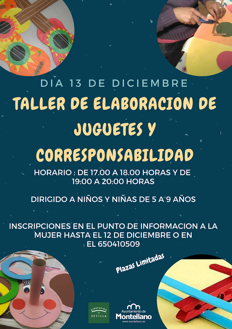 El Área de la Mujer del Ayuntamiento de Montellano va a poner en marcha un taller de elaboración de juguetes y corresponsabilidad que estará dirigido a niños y niñas en edades entre 5 y 9 años de edad.
