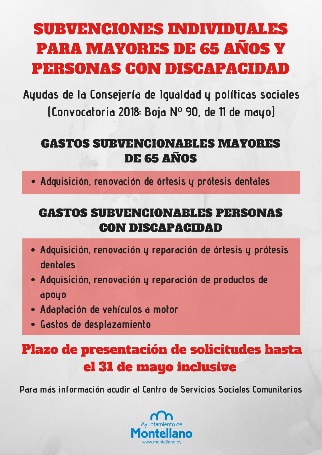 Abierto el plazo de presentación de solicitudes de ayuda para personas con discapacidad y mayores de 65 años.