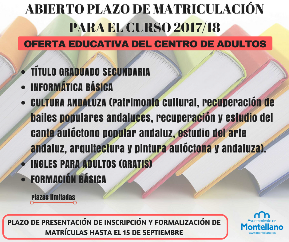 La oferta educativa ofertada para el Curso 2017-2018 en el Centro de Adultos de Montellano (El Punto) es:
