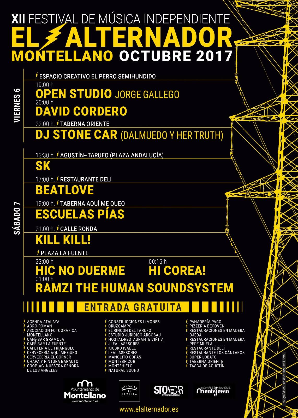 El Alternador, en su XII edición, contará en su cartel con David Cordero, Hi Corea!, Kill Kill!, Escuelas Pías, BeatLove, Hic no duerme, SK y RamZí – The Human SoundSystem.