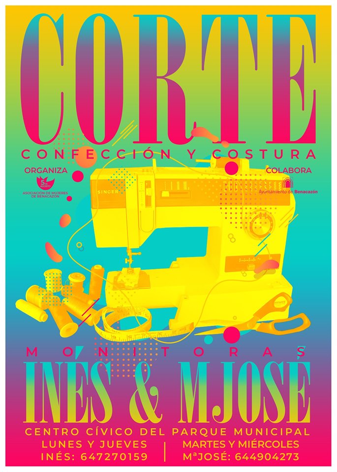- Corte y Confección: Martes y miércoles por parte de la monitora Mª José. Puedes inscribirte contactando en el teléfono 644 904 273.