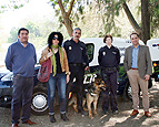 Un grupo de escolares del colegio público de Valencina El Algarrobillo han asistido a la presentación del parque y han podido disfrutar del show 'Entre perros anda el juego' a cargo de la Asociación DISCDOG con exhibiciones de agility (modalidad competitiva donde un guía dirige a un perro para salvar una serie deobstáculos).