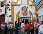 El alcalde de Valencina de la Concepción, Antonio Suárez, visitó el jueves en la Casa de la Cultura la exposición "Soñando balcones", un proyecto de 26 intervenciones artísticas en edificios del centro histórico del municipio a cargo del alumnado de los talleres municipales de Pintura. Acompañado de numerosos vecinos y vecinas, la delegada de Cultura, María Luisa Beltrán, la delegada de Desarrollo Local, Sonia Arellano, el alcalde paseó por el centro para visitar las obras artísticas.