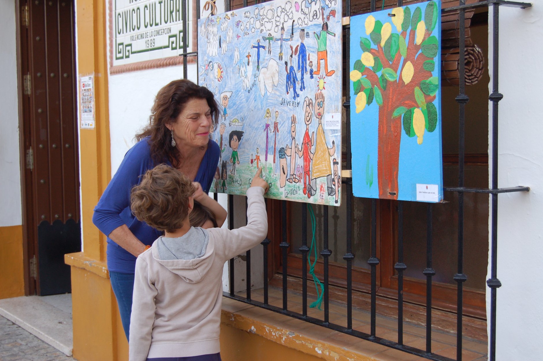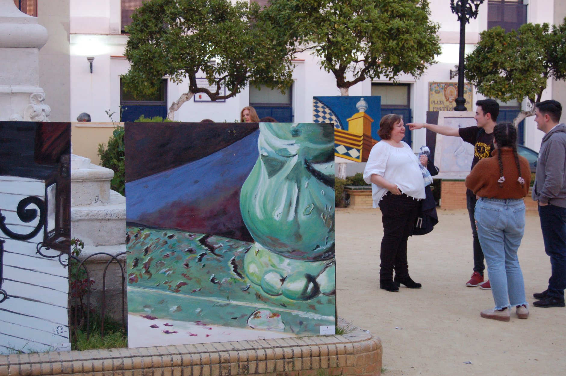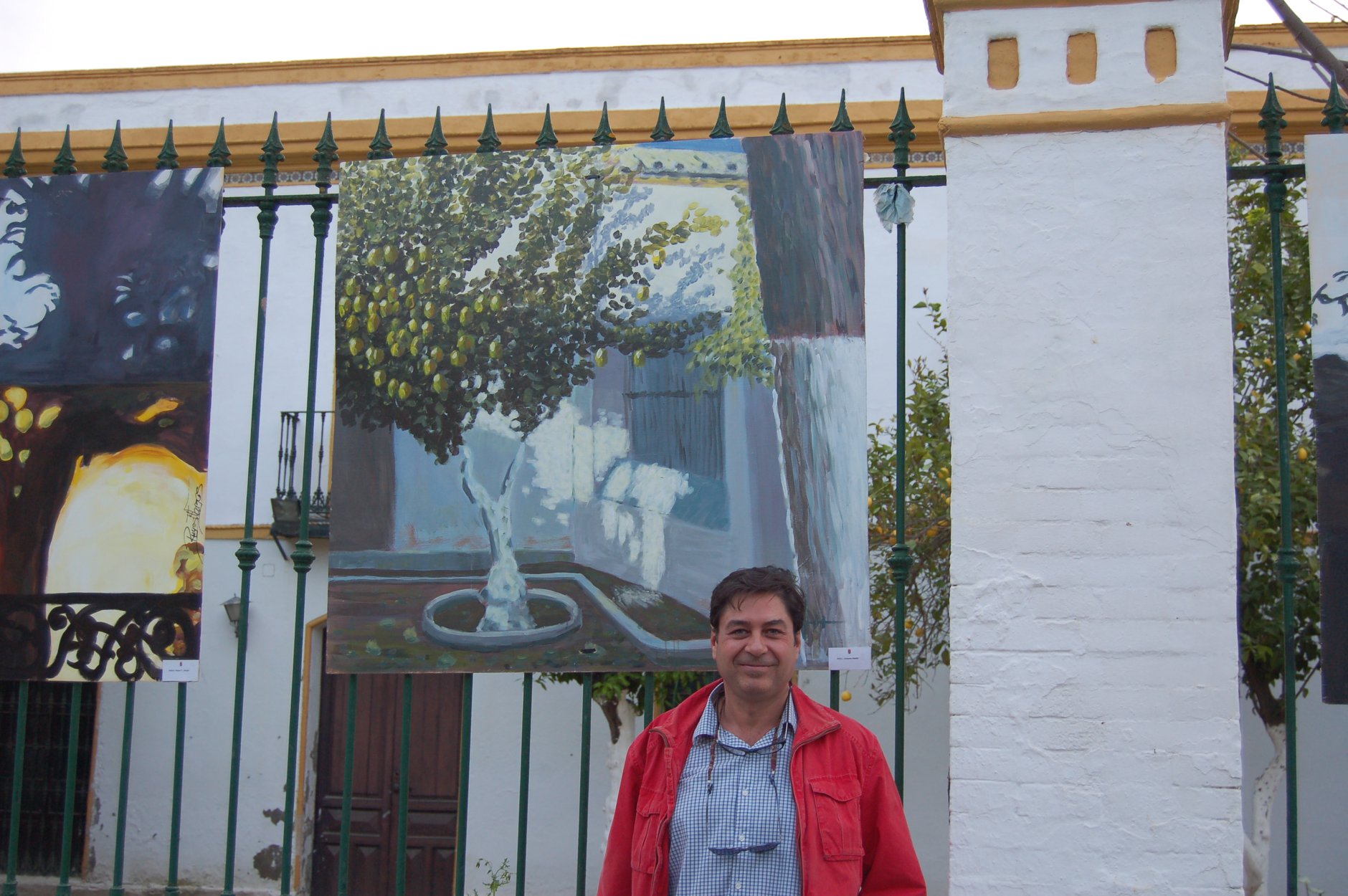 La exposición crea un original itinerario artístico con pinturas que plasman los rincones más bellos de Valencina, situándolos en la arboleda y fachadas de este emplazamiento