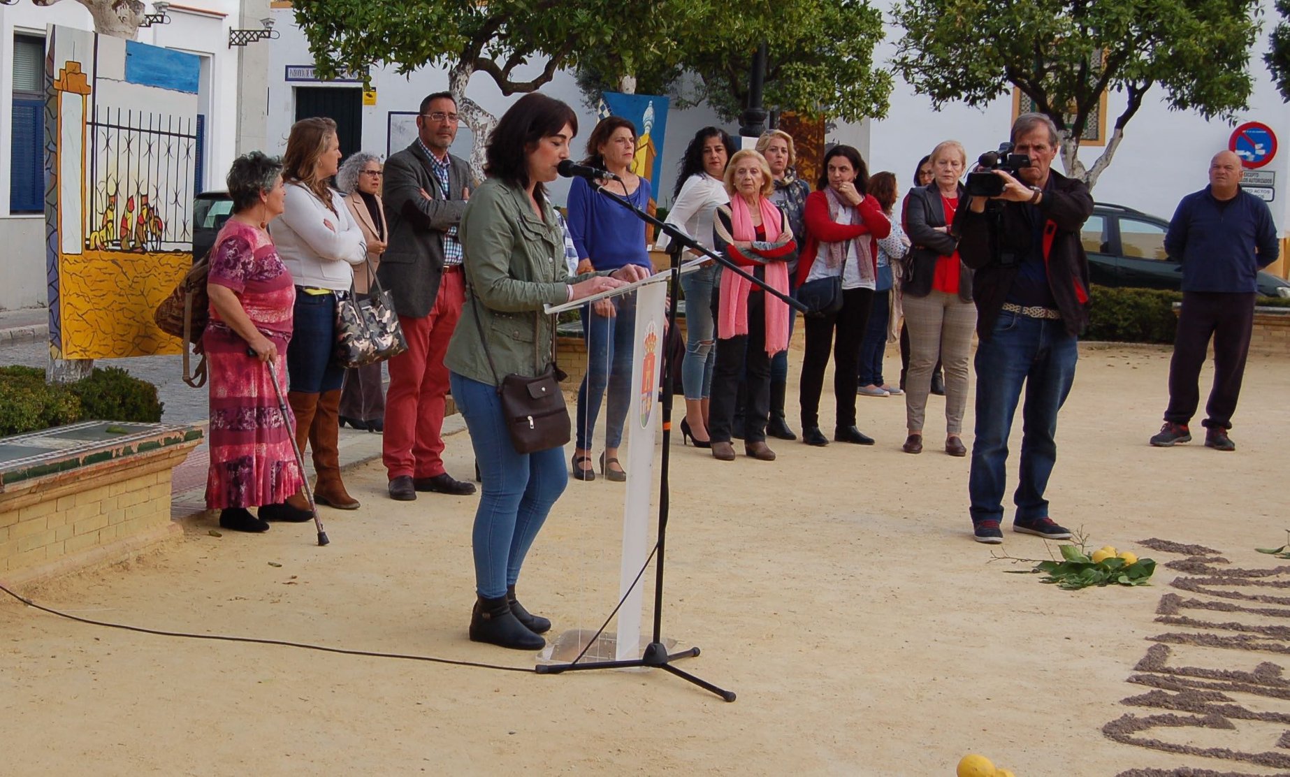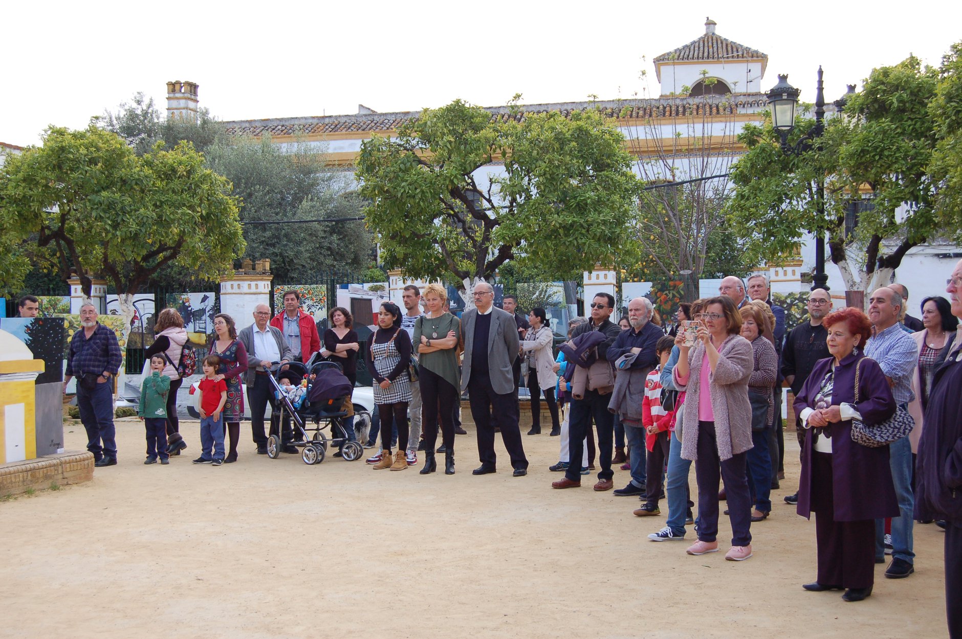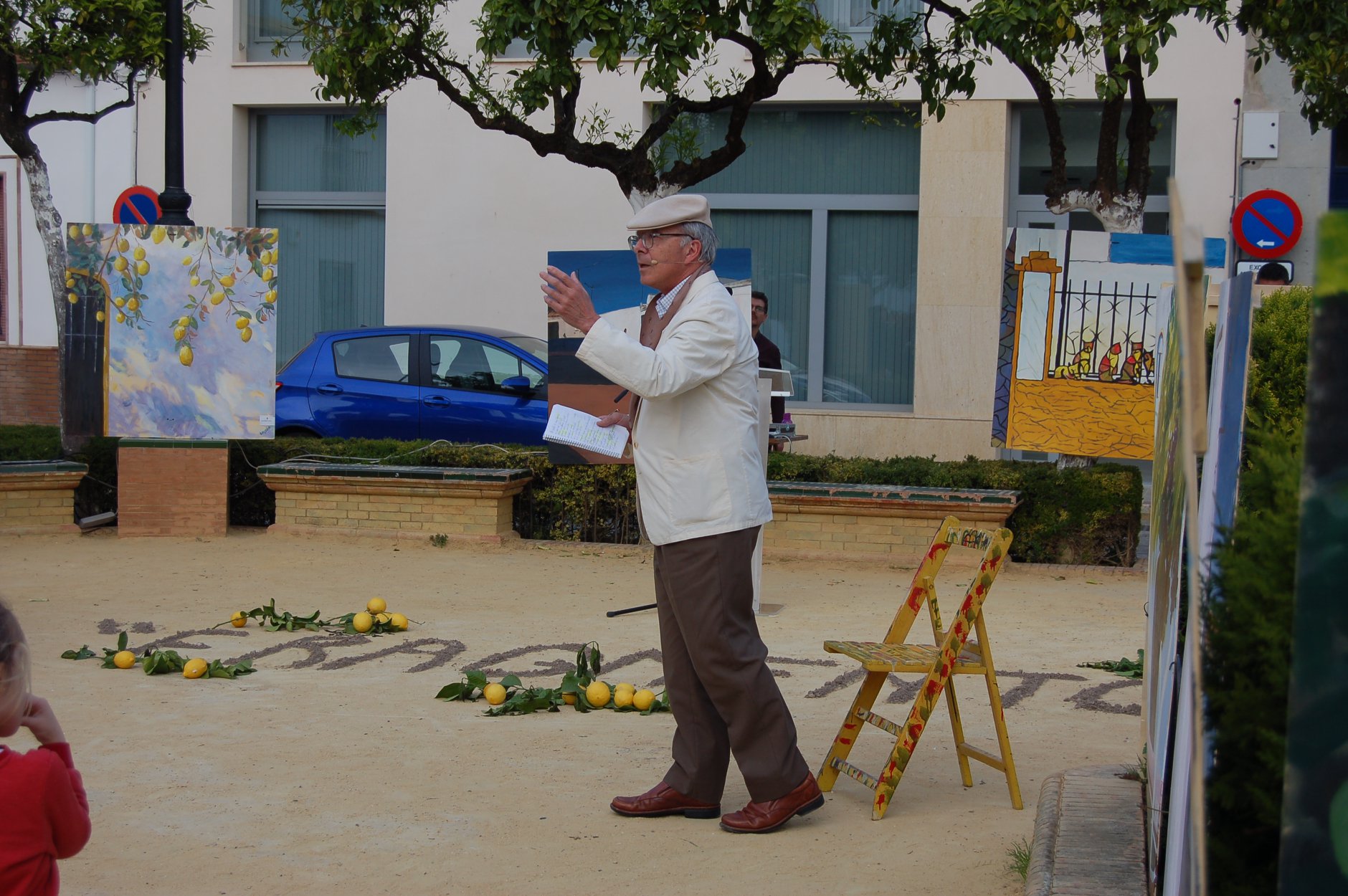 La exposición crea un original itinerario artístico con pinturas que plasman los rincones más bellos de Valencina, situándolos en la arboleda y fachadas de este emplazamiento