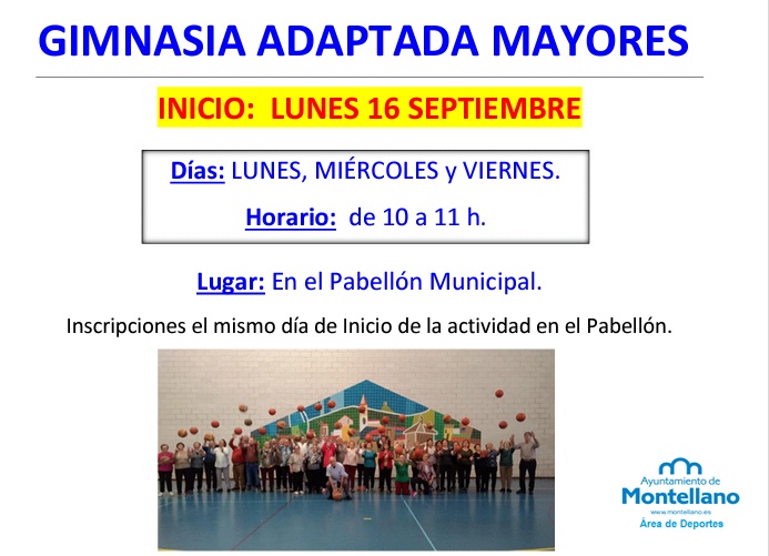El próximo lunes 16 de septiembre a las 10.00 horas comenzará la nueva temporada de Gimnasia adaptada para mayores en el Pabellón Municipal.