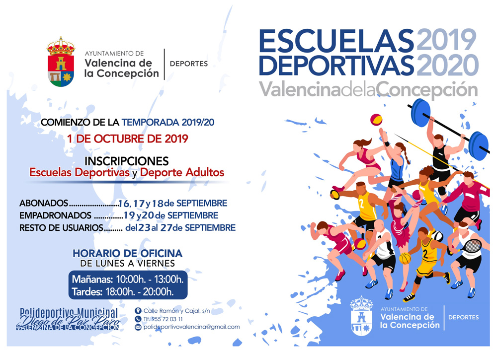 Información completa en el folleto adjunto, en el teléfono 955 72 03 11 y en el email polideportivovalencina@gmail.com