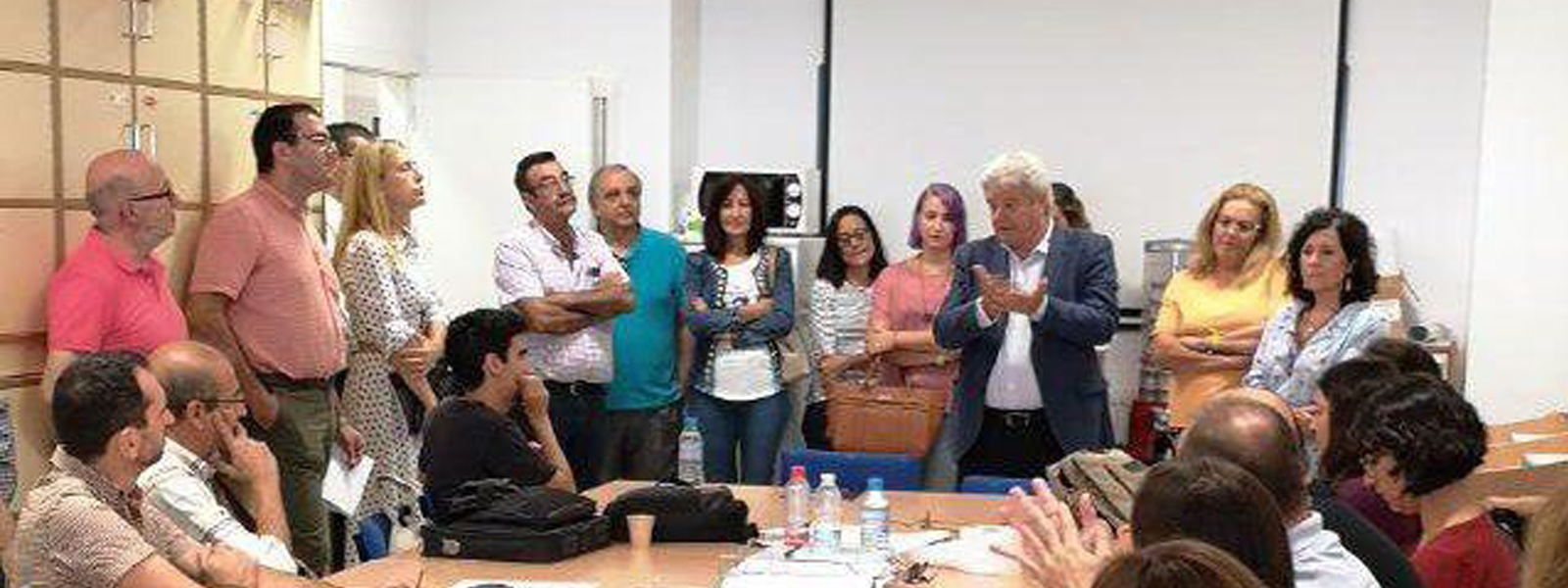 Algunos de los miembros de la corporación del Ayuntamiento de Santiponce han visitado el IES Itálica en la jornada matinal de hoy para presentarse al claustro de profesores del centro e inaugurar así el curso escolar.
