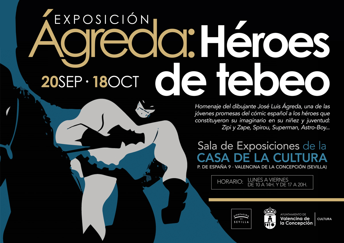 El Ayuntamiento de Valencina, a través de la delegación municipal de Cultura, organiza en la Sala de Exposiciones de la Casa de la Cultura (Plaza de España, 9) la muestra "Ágreda: Héroes de tebeo", que podrá visitarse del 20 de septiembre al 18 de octubre.