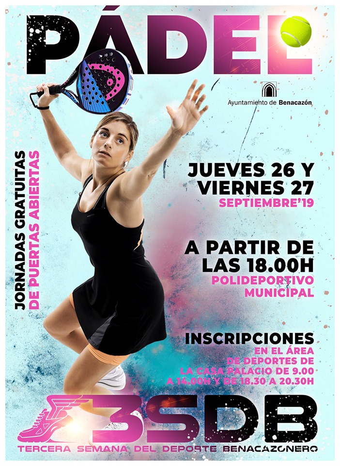 Desde el Ayuntamiento de Benacazón tenemos el placer de informarte sobre las Jornadas gratuitas de Puertas Abiertas de las pistas de pádel, actividad incluida en la 3SDB organizada por el Área municipal de Deportes. Estas jornadas de puertas abiertas tendrán lugar el jueves 26 y viernes 27 de septiembre a partir de las 18.00 en el Polideportivo Municipal.