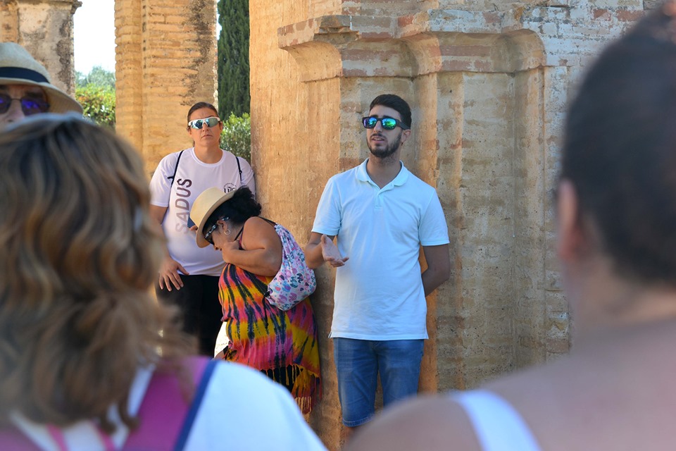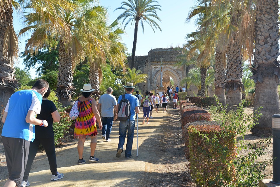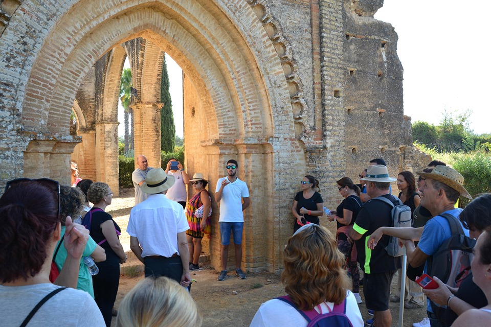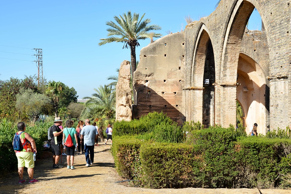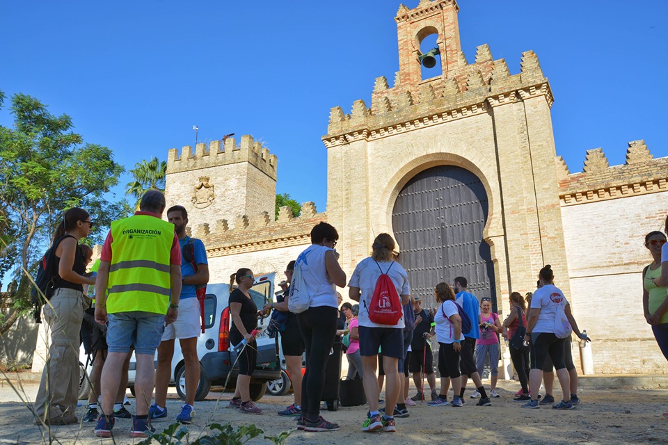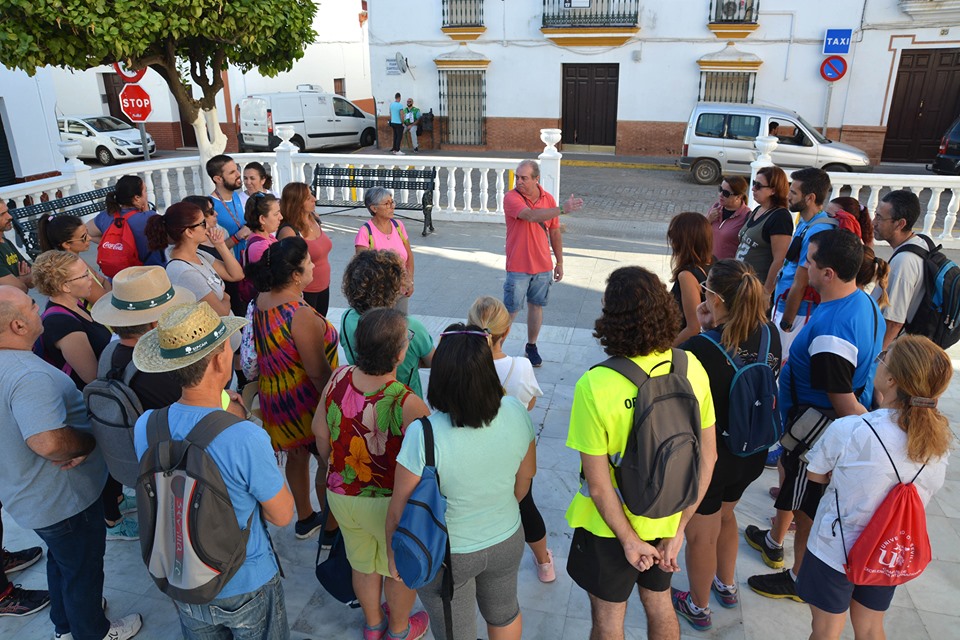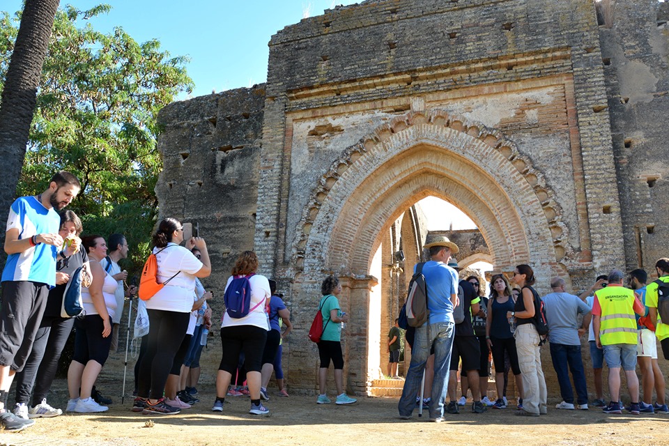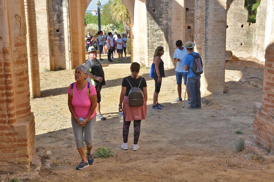 Su trayecto, de 10 kilómetros en total, discurrió por varios caminos del entorno rural de Benacazón hasta las ruinas de la ermita de Talhara. El vecino e historiador local Julio Adame expuso al grupo este bello edificio mudéjar, centrándose en su historia, arquitectura y otras características.