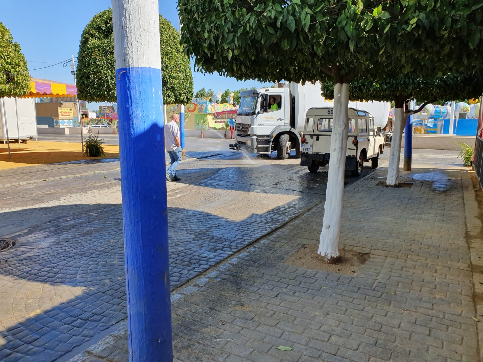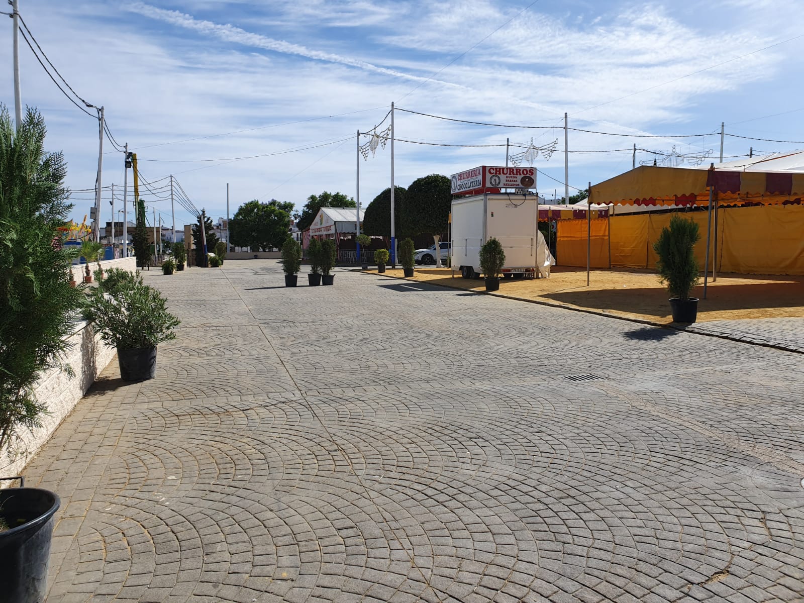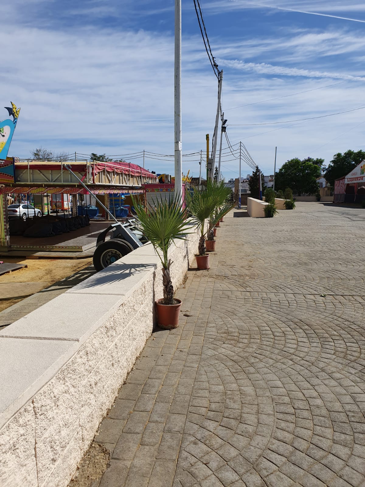 Se han pintado y podado los árboles, se han embellecido las calles con plantas, se ha limpiado y baldeado todo el recinto, se han acondicionado los espacios comunes, se ha colocado la iluminación…….sólo falta inaugurar la Feria 2019 de Santiponce.