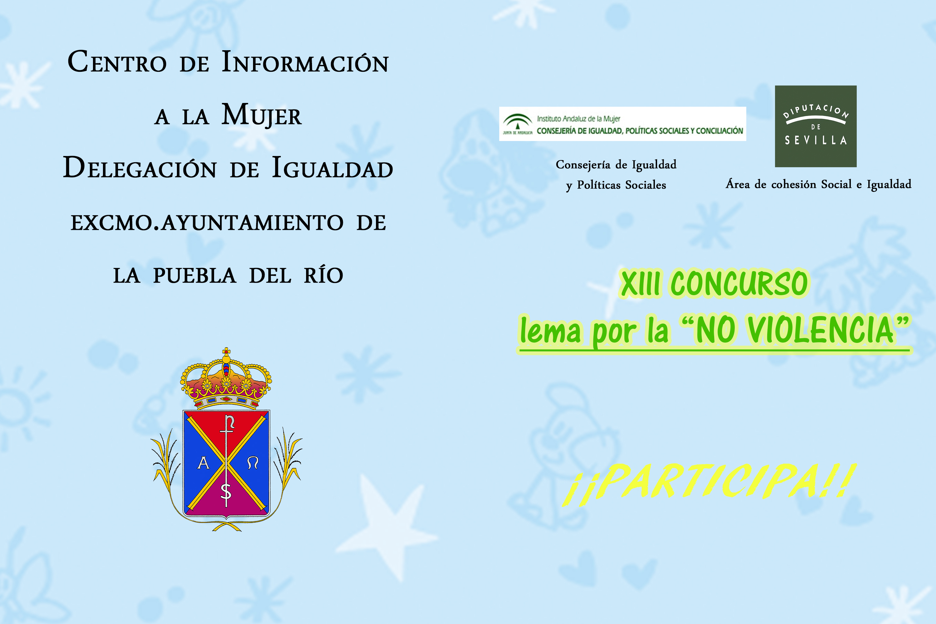 La Delegación de Igualdad del Ayuntamiento de La Puebla del Río, a través del Centro de Información a la Mujer, convoca la decimotercera edición del concurso "Lema por la no violencia", en el que participan los escolares de la localidad con el objetivo de sensibilizar a los niños y niñas contra este importante aspecto de la sociedad.