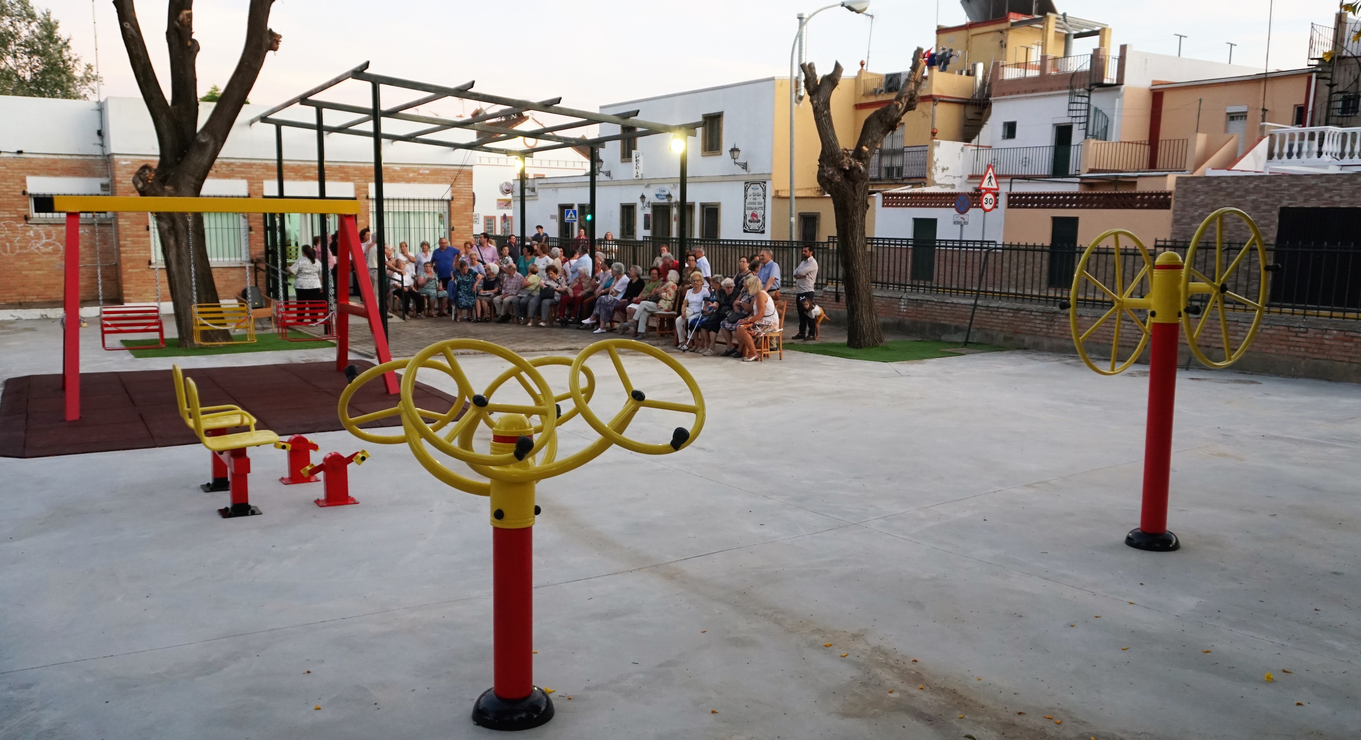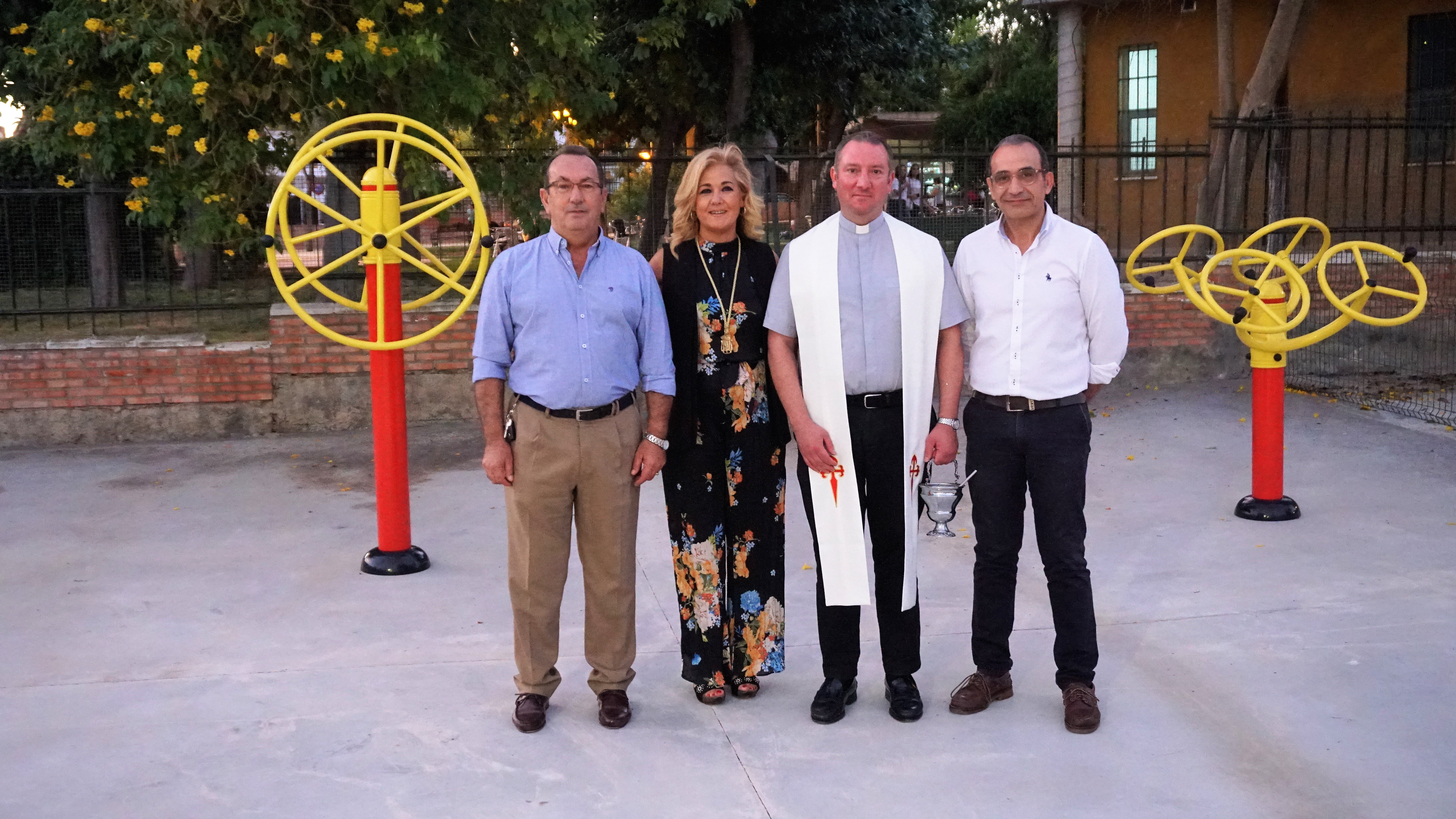En el Centro de Mayores, Herrera tuvo la oportunidad de visitar los nuevos aparatos de gimnasia instalados en el patio por la Obra Social Ntra. Sra. de la Soledad, y que fueron bendecidos por el párroco.