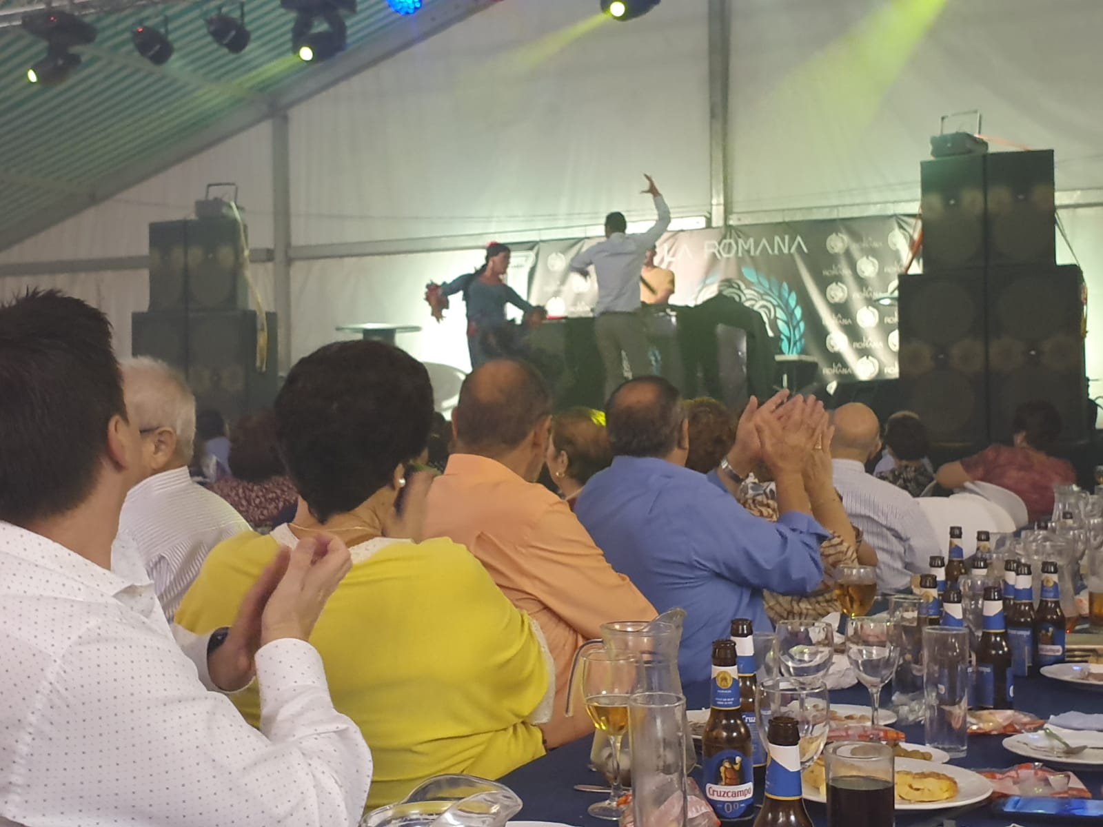 Ayer noche nuestras personas mayores fueron convocadas por el Ayuntamiento a una convivencia en la que cenaron todas juntas en la Feria y su velada fue amenizada por la actuación de Yumara Vargas.
