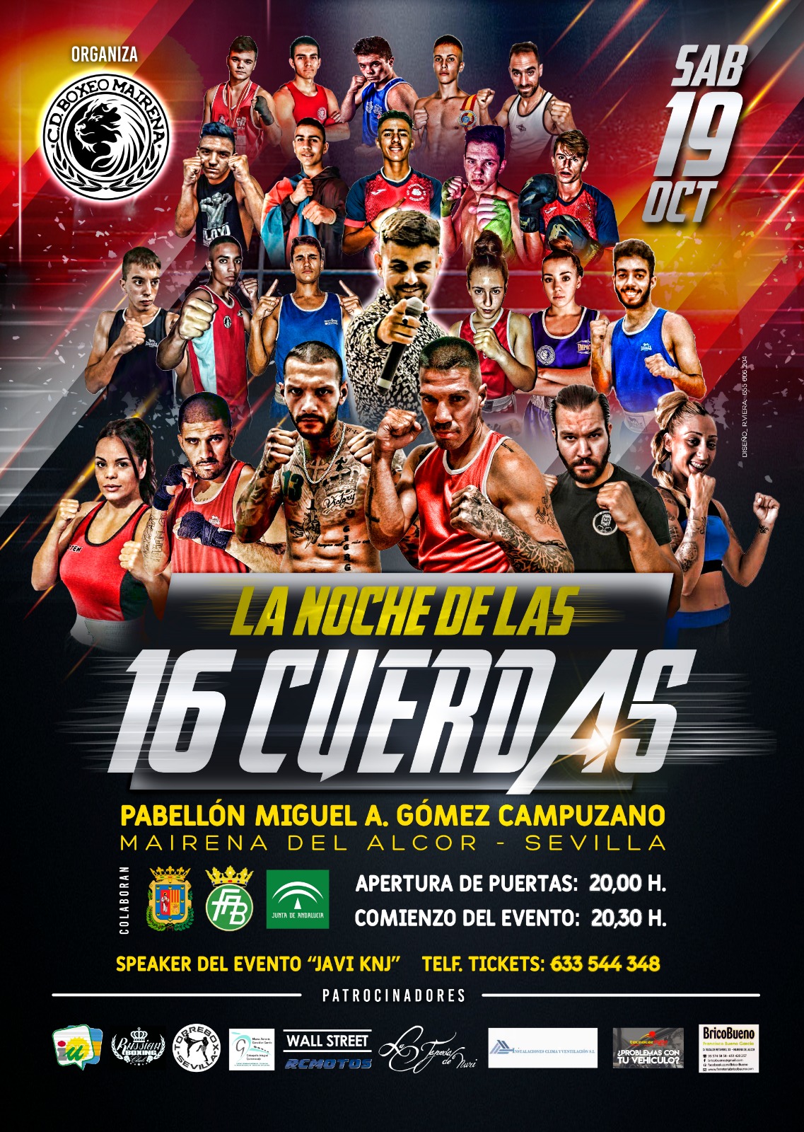 El Club Deportivo Boxeo Mairena organiza La noche de las 16 cuerdas, en colaboración con la Federación Andaluza de Boxeo, el Ayuntamiento de Mairena del Alcor y la Diputación de Sevilla. Se trata de un torneo de 10 combates de boxeo olímpico que se celebra por tercer año consecutivo. La gala contará con la participación cuatro jóvenes promesas maireneras de este deporte, Julio Tapia García en la categoría élite peso pesado, Santiago Tapia García en welter ligero, Andrei Anca en junior peso ligero y por último Nazaret Bueno en la categoría junior peso mosca.