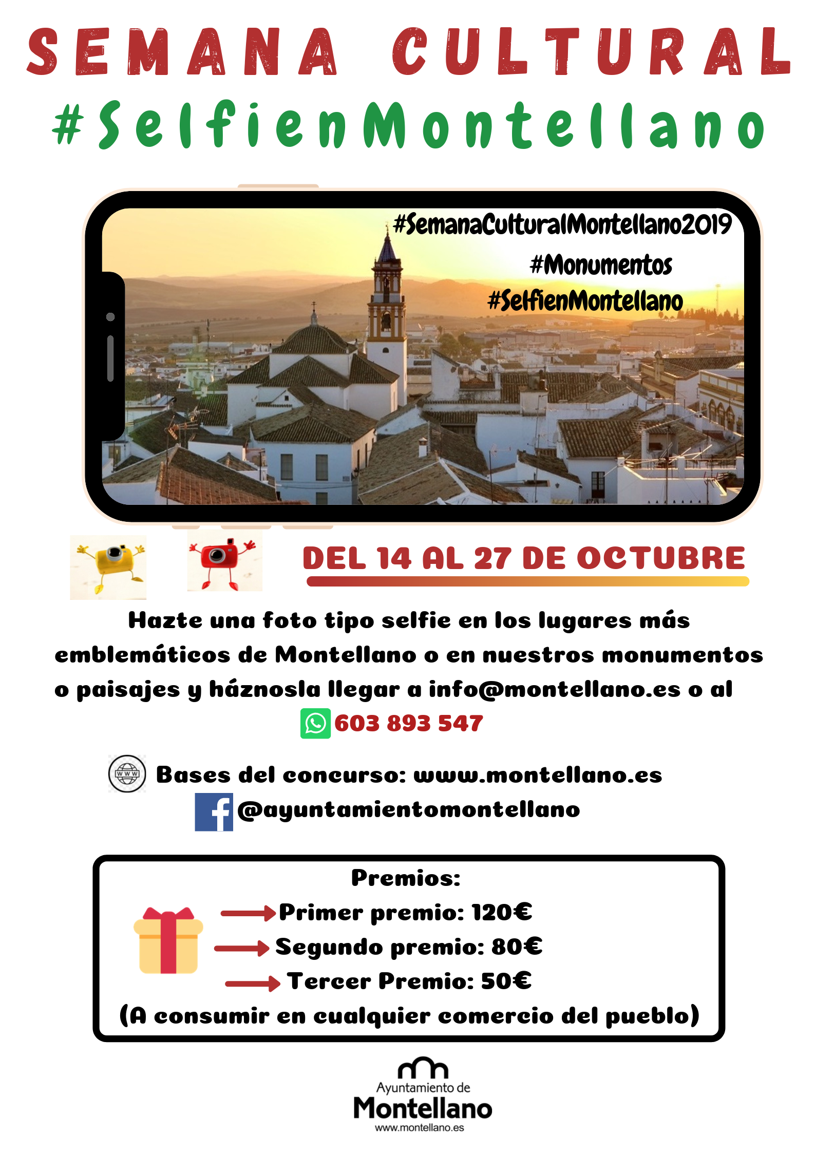 ➡️ CONTINUAMOS CON EL CONCURSO DE SELFIES #SelfienMontellano. Para acceder a las bases del concurso pueden hacerlo en el siguiente enlace: http://www.montellano.es/es/actualidad/noticias/El-Area-de-Cultura-del-Ayuntamiento-convoca-un-Consurso-de-Selfies-con-motivo-de-la-Semana-Cultural/?urlBack=/es/index.html
