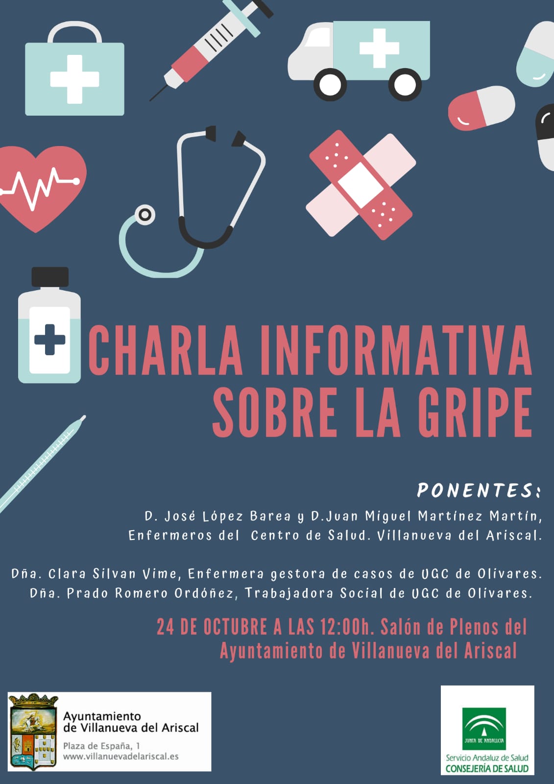 Llegan los fríos y con ellos la gripe. Te esperamos en la charla informativa el próximo jueves a las 12:00 h. en el Salón de Plenos del Ayuntamiento de Villanueva del Ariscal. Contaremos con varios profesionales que nos darán pautas y consejos.