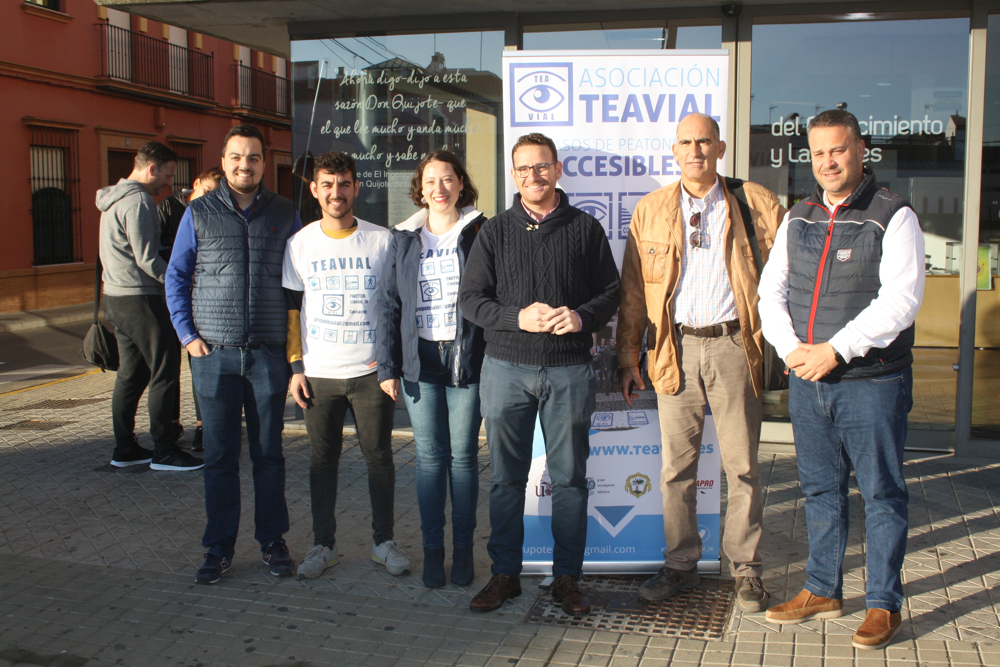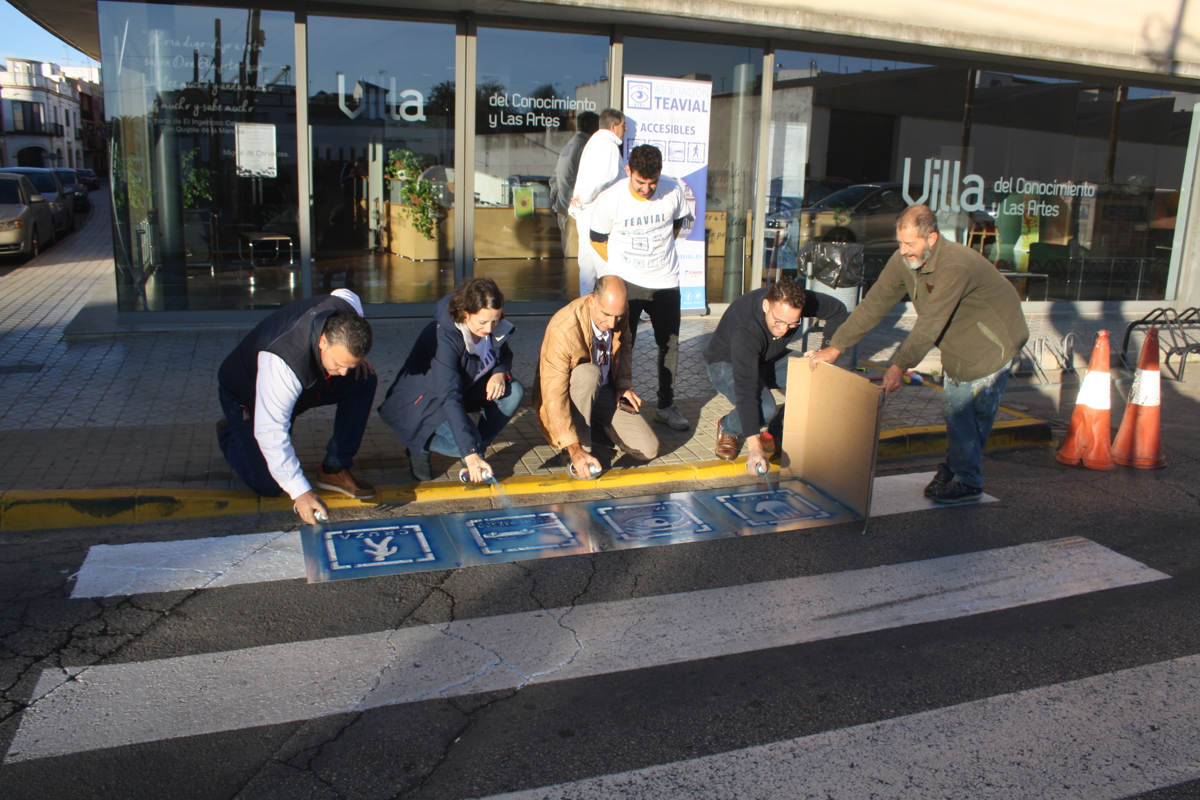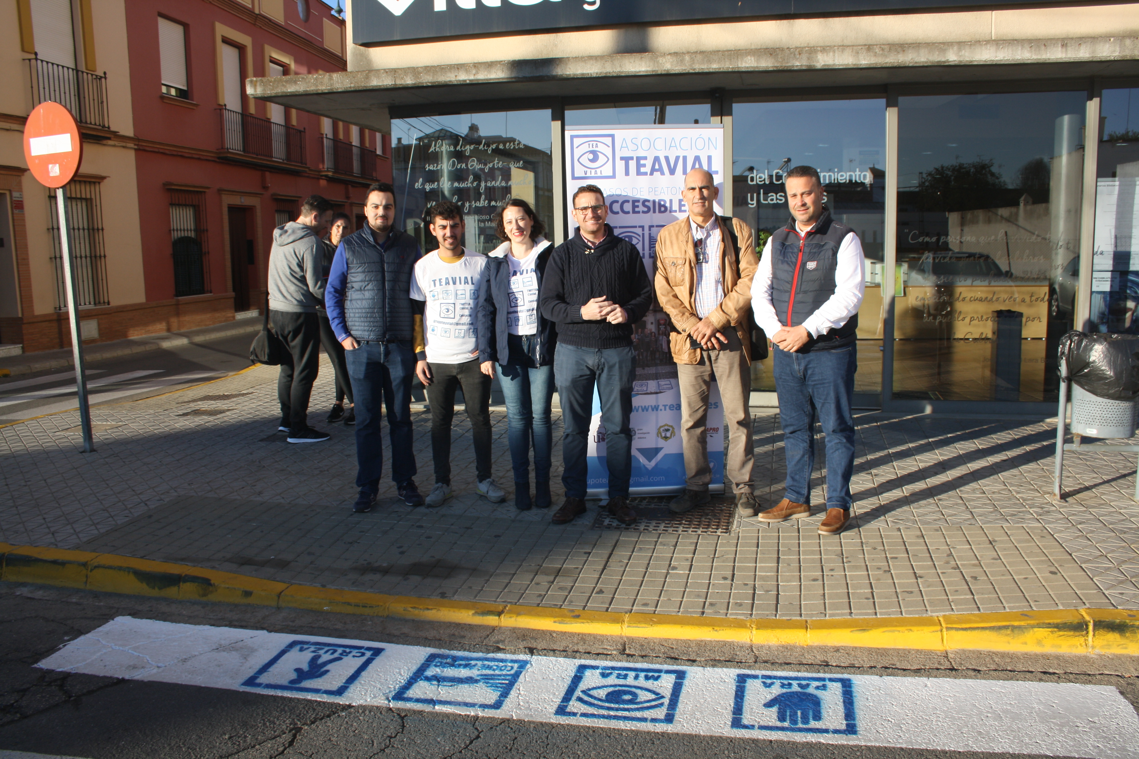Los concejales delegados de Urbanismo y Coordinación de Barrios, José Navarro y José Romero, respectivamente, han anunciado hoy que se han vuelto a pictorizar los pasos de peatones para eliminar las barreras cognitivas en Mairena del Alcor. José Navarro ha estado acompañado por representantes de la asociación Teavial, entre los que se encontraba Carlos Hervás -quien dirige los estudios acerca de la implementación de este proyecto educativo- y la pedagoga Lola Domínuez.