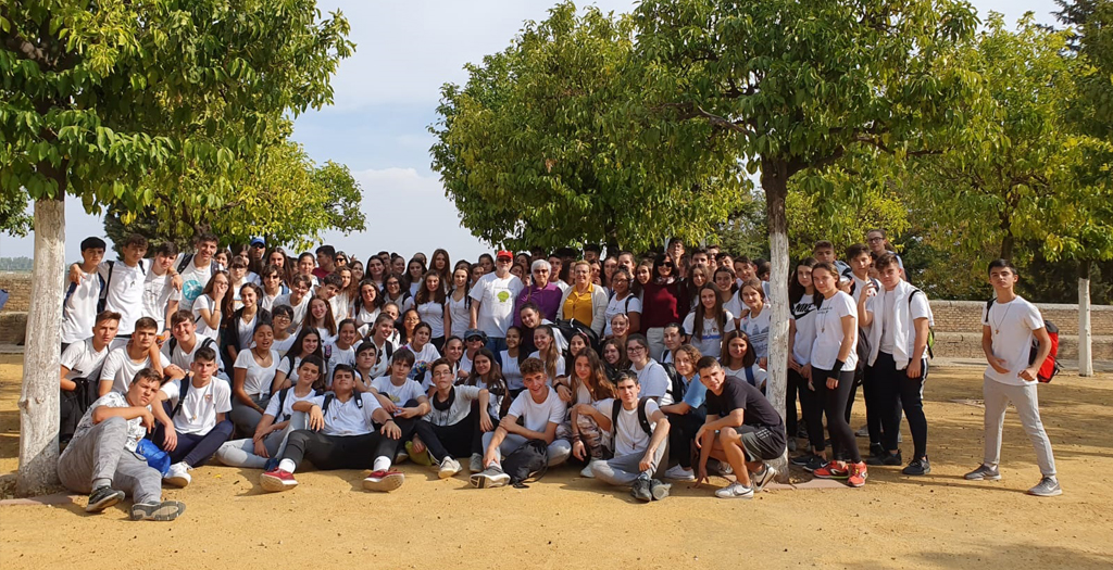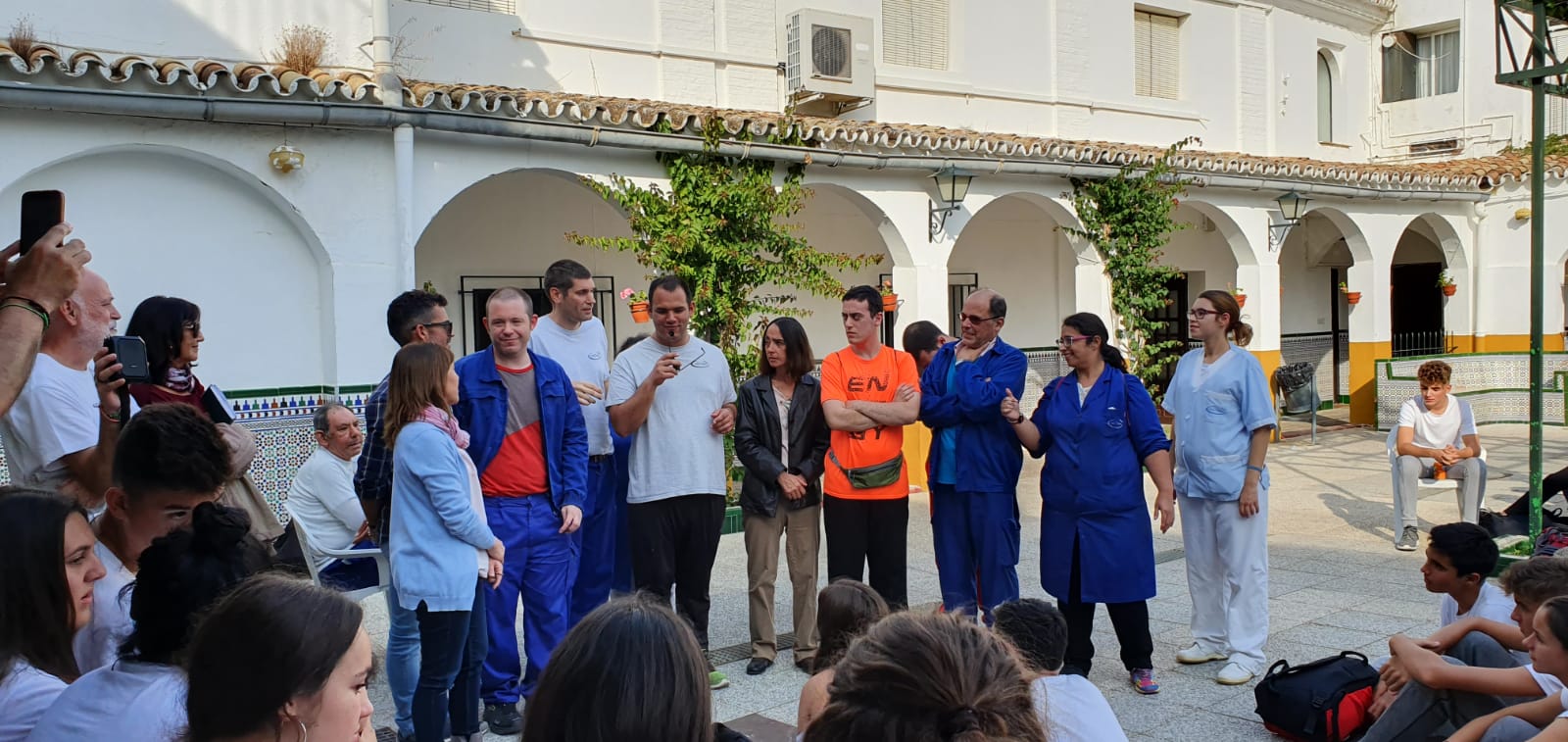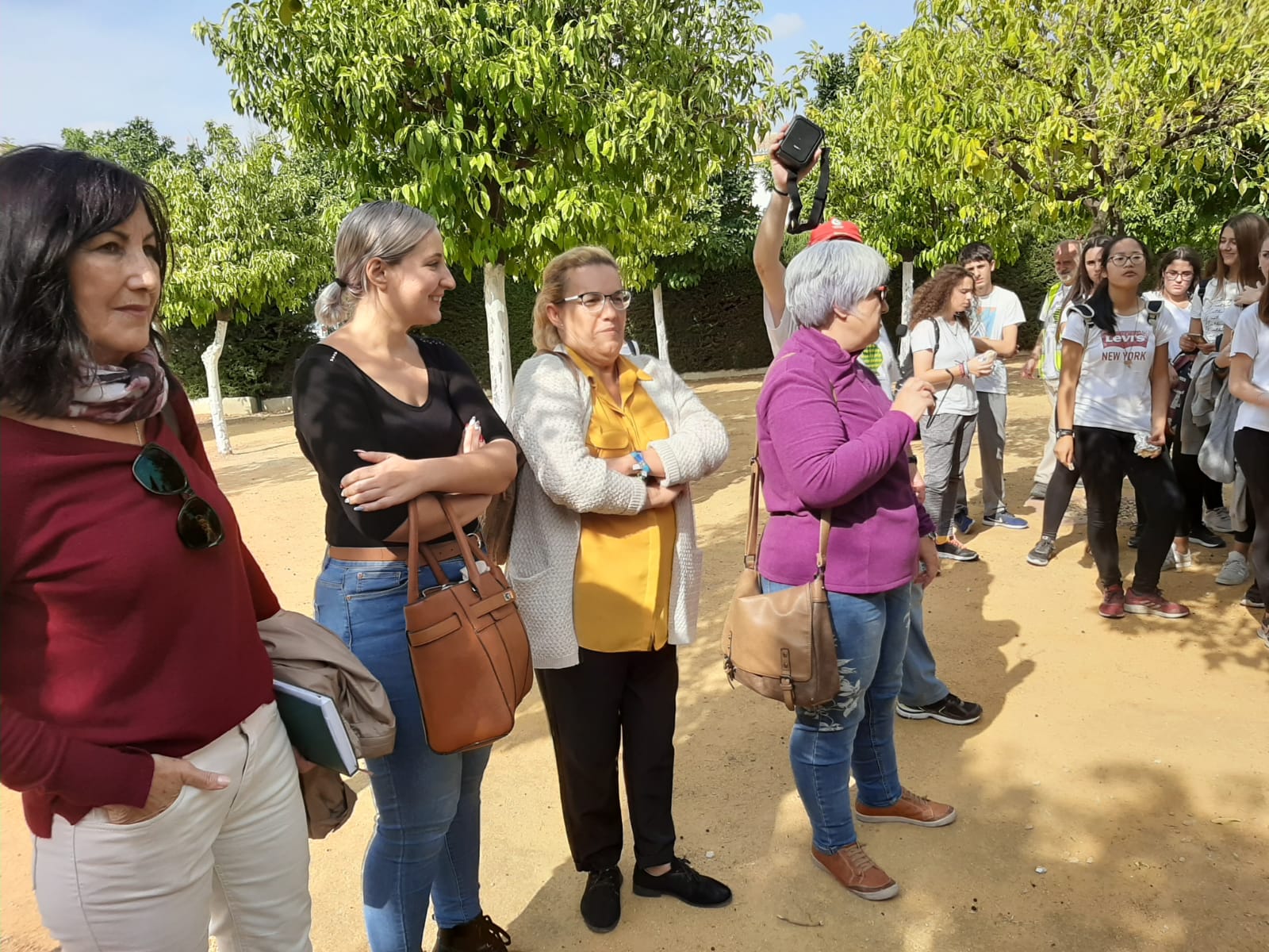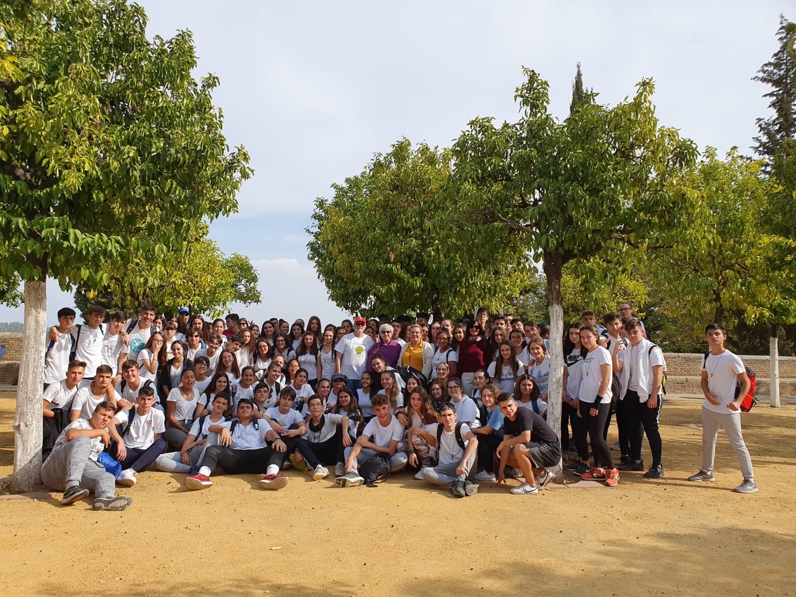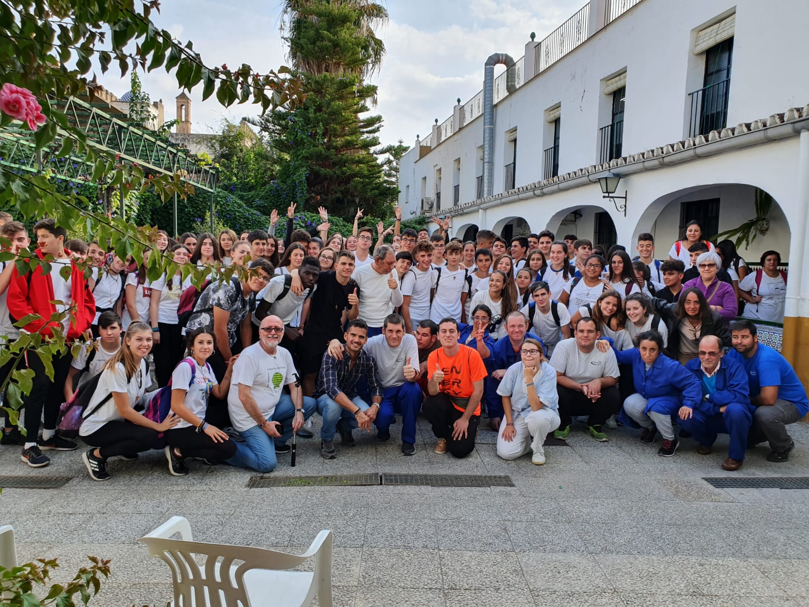 Hoy alumnos del IES Itálica, IES Azahara e IES Miguel de Mañara han recorrido parte de la primera etapa del Camino de Santiago, concretamente desde Sevilla hasta Santiponce. Ya en nuestra localidad han sido recibidos en el Monasterio de San Isidoro del Campo por parte del equipo de gobierno, que ha vivido con ellos y sus profesores una jornada de convivencia con los jóvenes integrantes de la Asociación Paz y Bien que han narrado a los alumnos sus experiencias y vivencias en el Centro.
