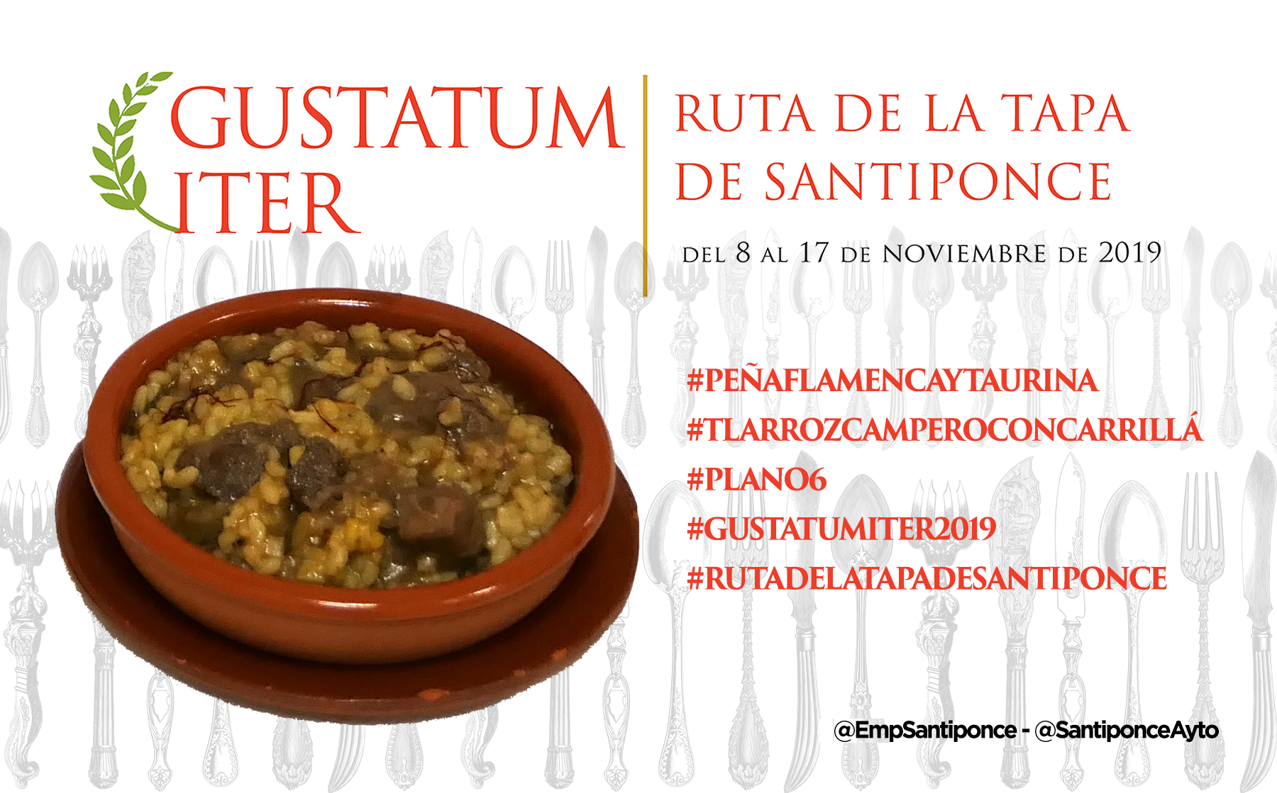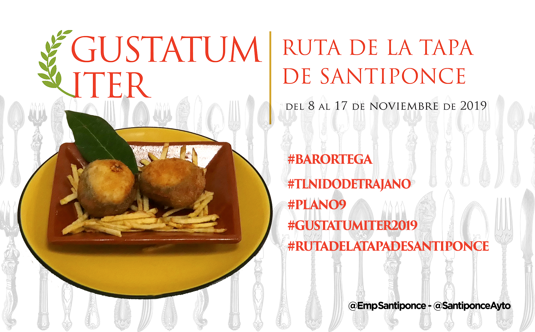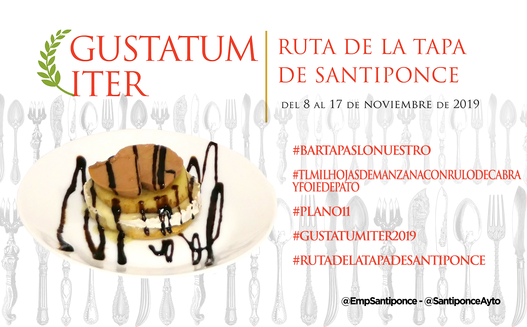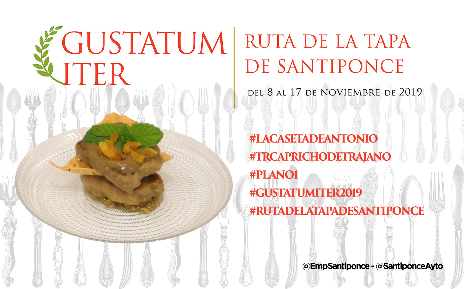 Ya puedes empezar a probar y compartir la foto de tu tapa preferida, puedes usar esta o la que tu hagas, usa los #Hashtags que te indicamos y no olvides mecionarnos a @SantiponceAyto y @EmpSantiponce.