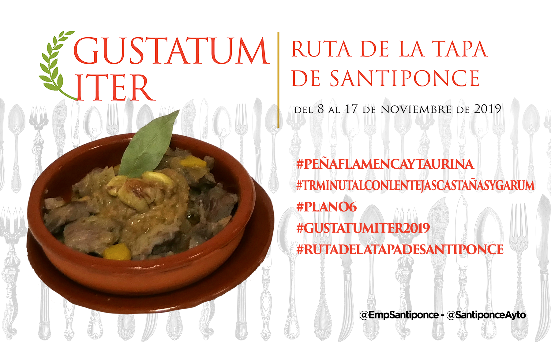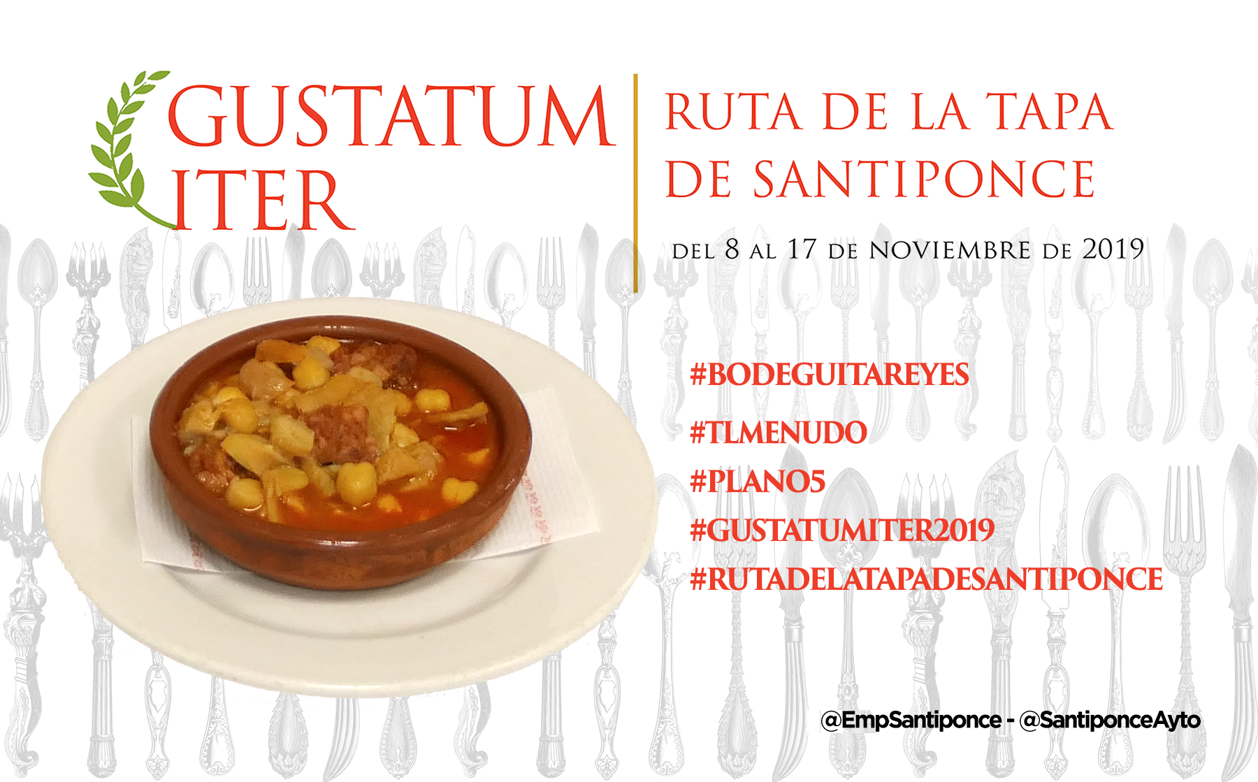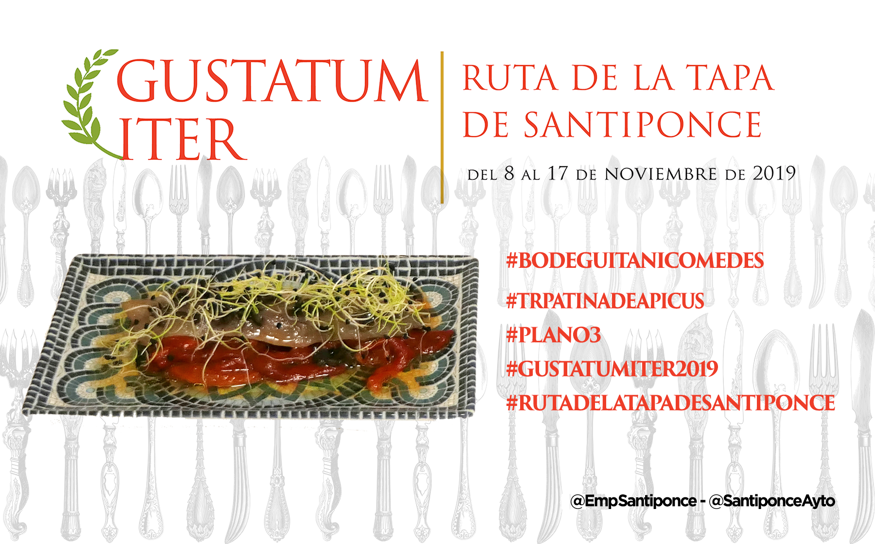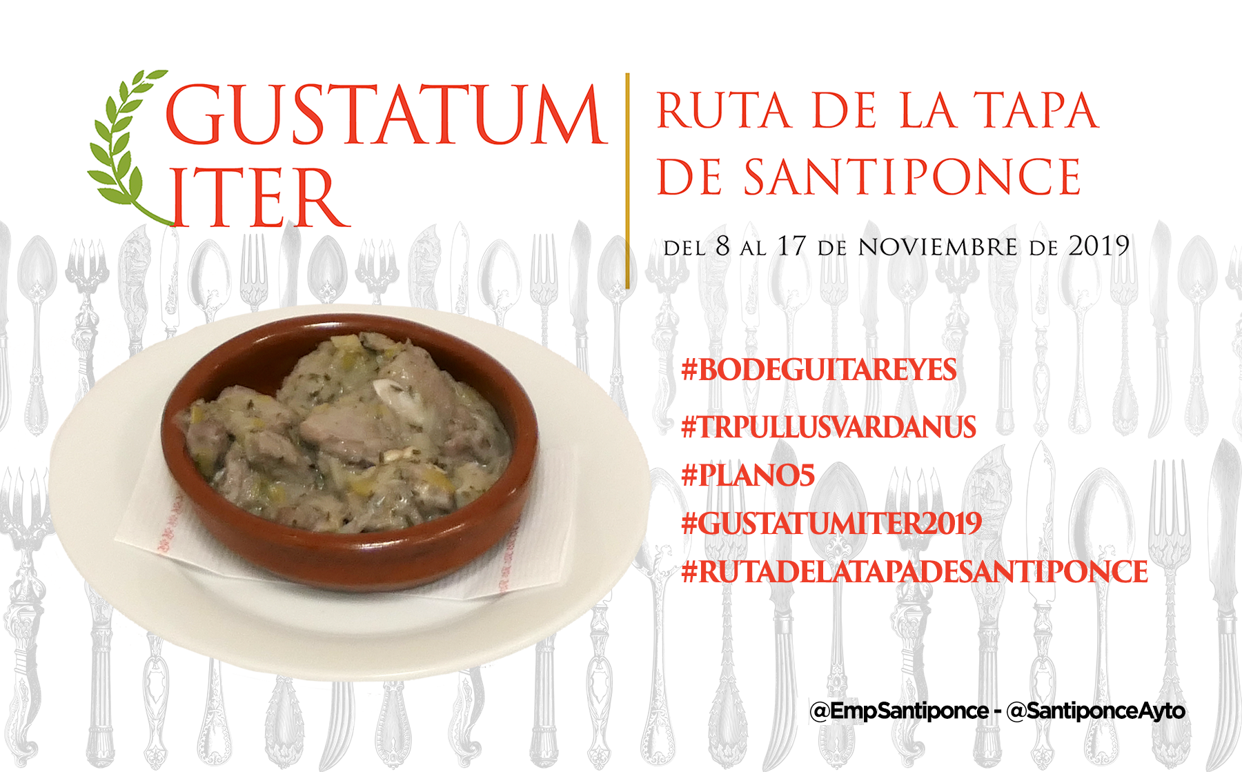 Ya puedes empezar a probar y compartir la foto de tu tapa preferida, puedes usar esta o la que tu hagas, usa los #Hashtags que te indicamos y no olvides mecionarnos a @SantiponceAyto y @EmpSantiponce.