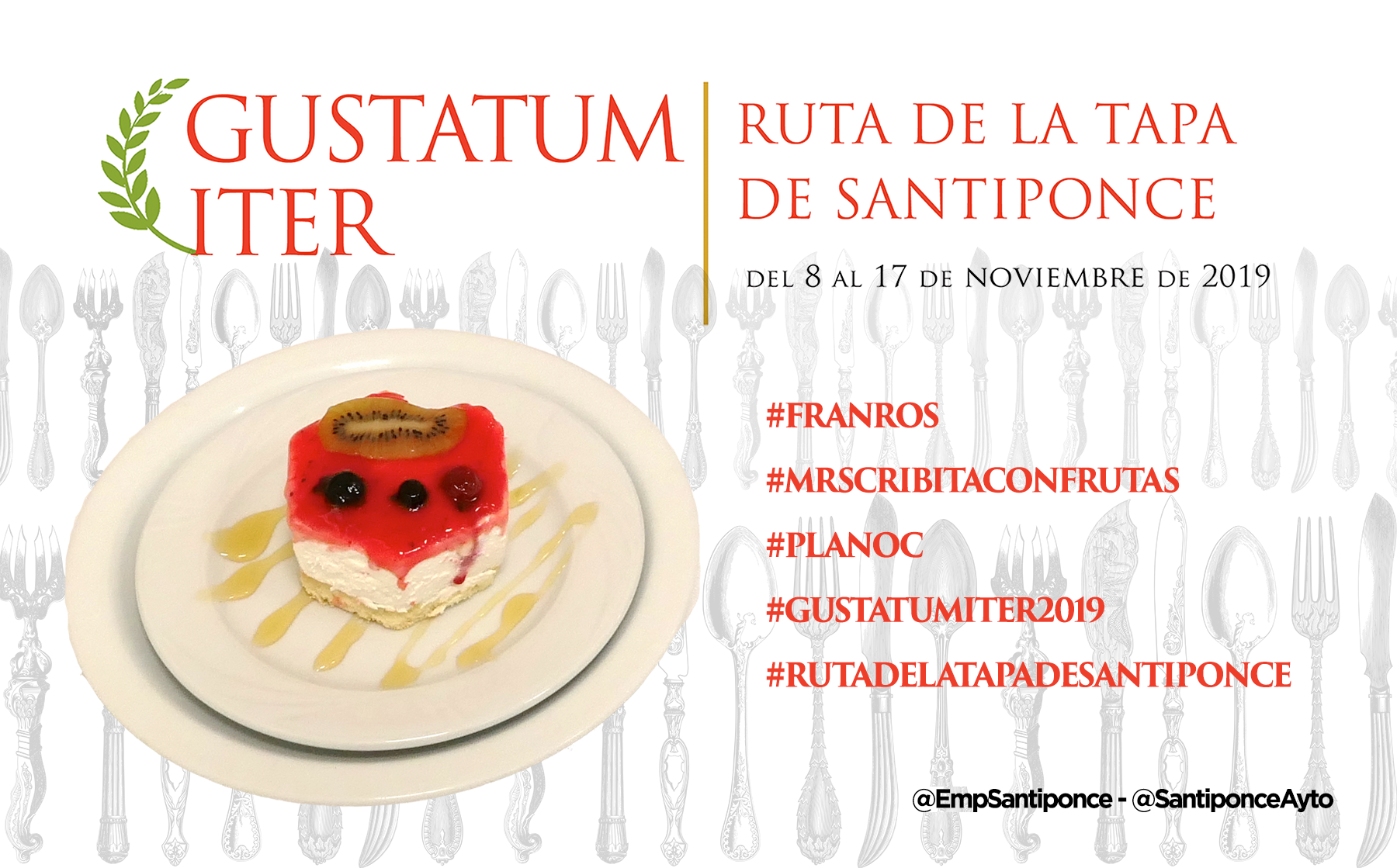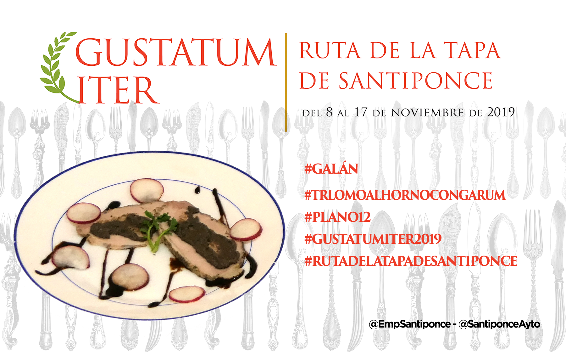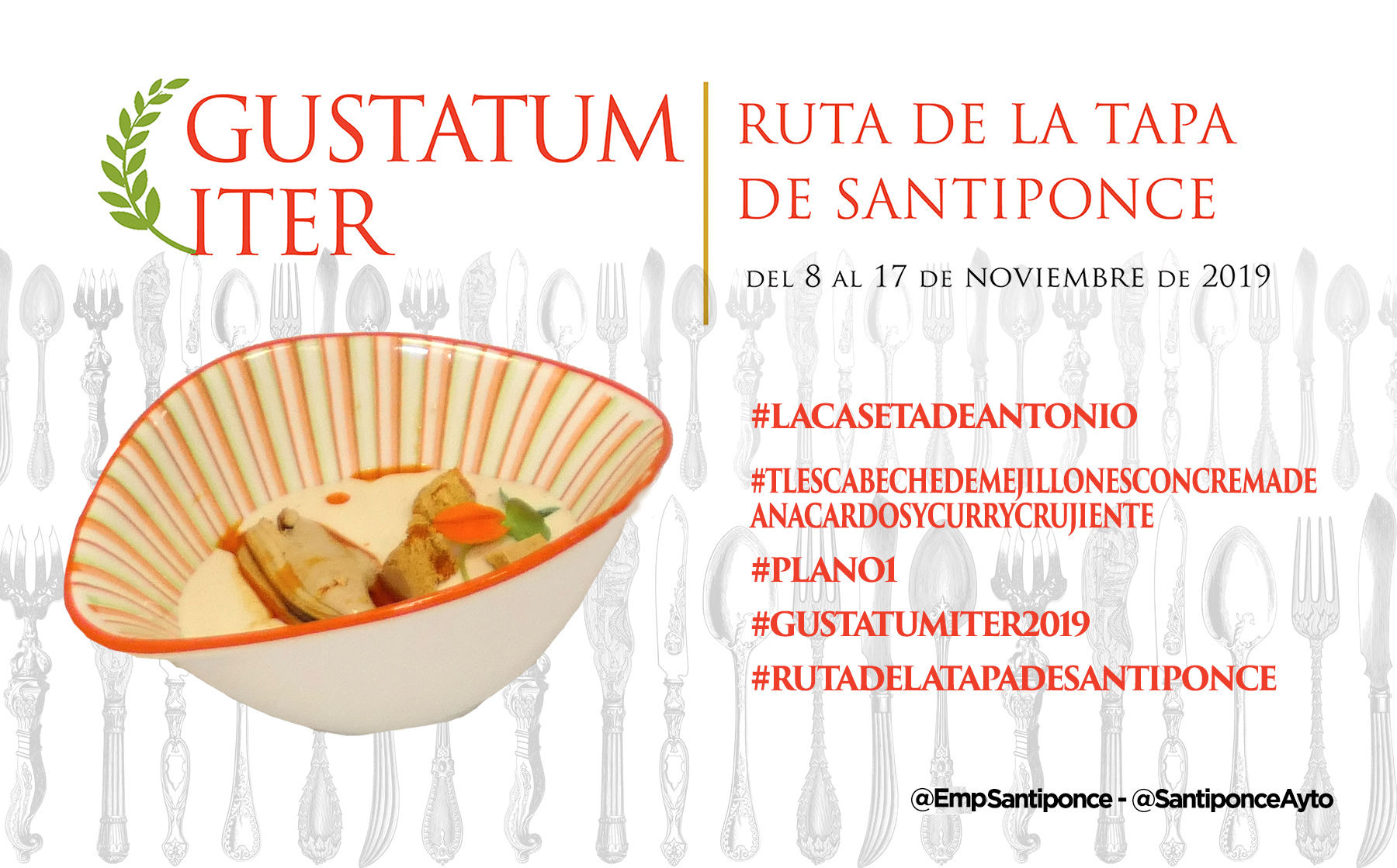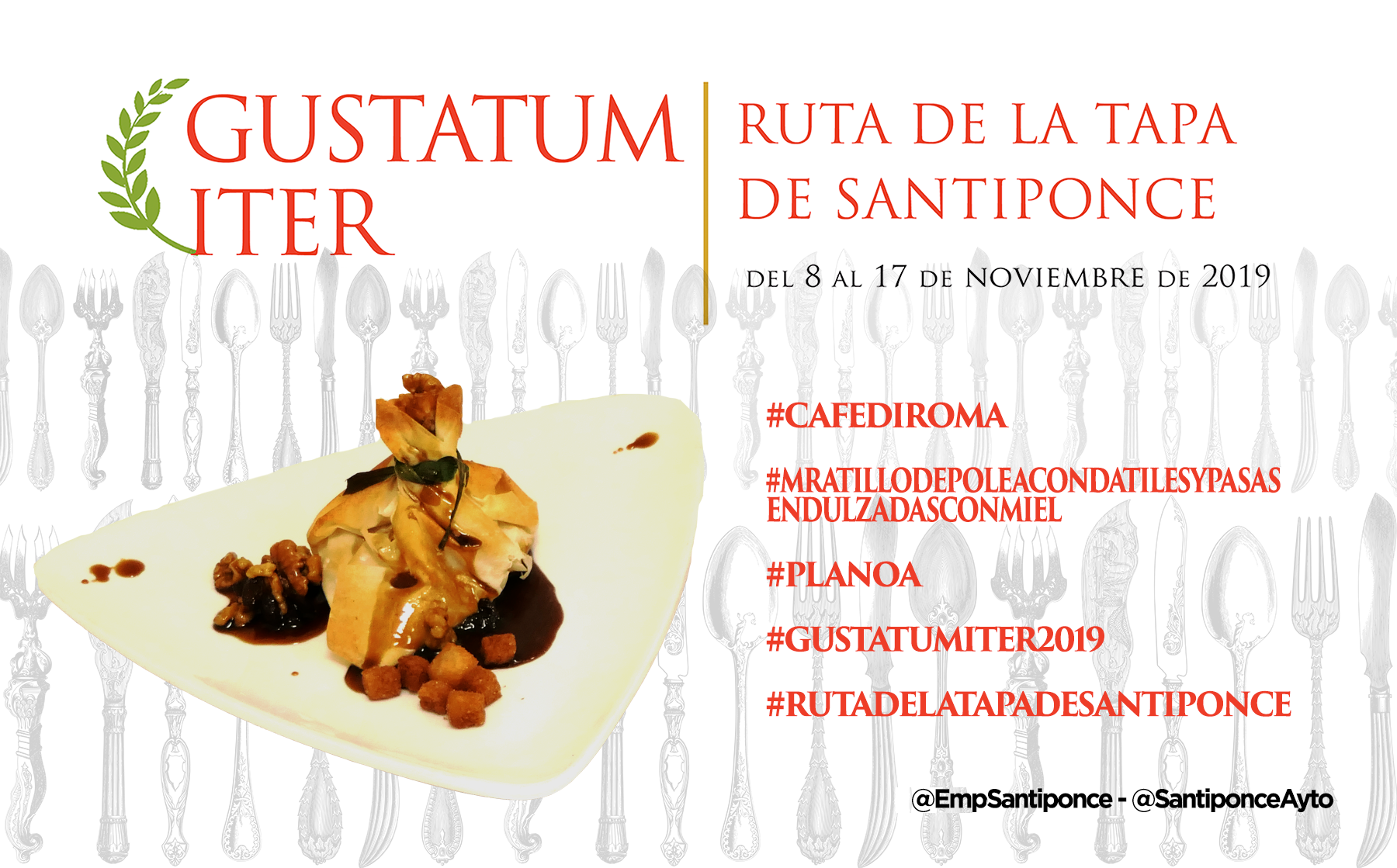 Ya puedes empezar a probar y compartir la foto de tu tapa preferida, puedes usar esta o la que tu hagas, usa los #Hashtags que te indicamos y no olvides mecionarnos a @SantiponceAyto y @EmpSantiponce.