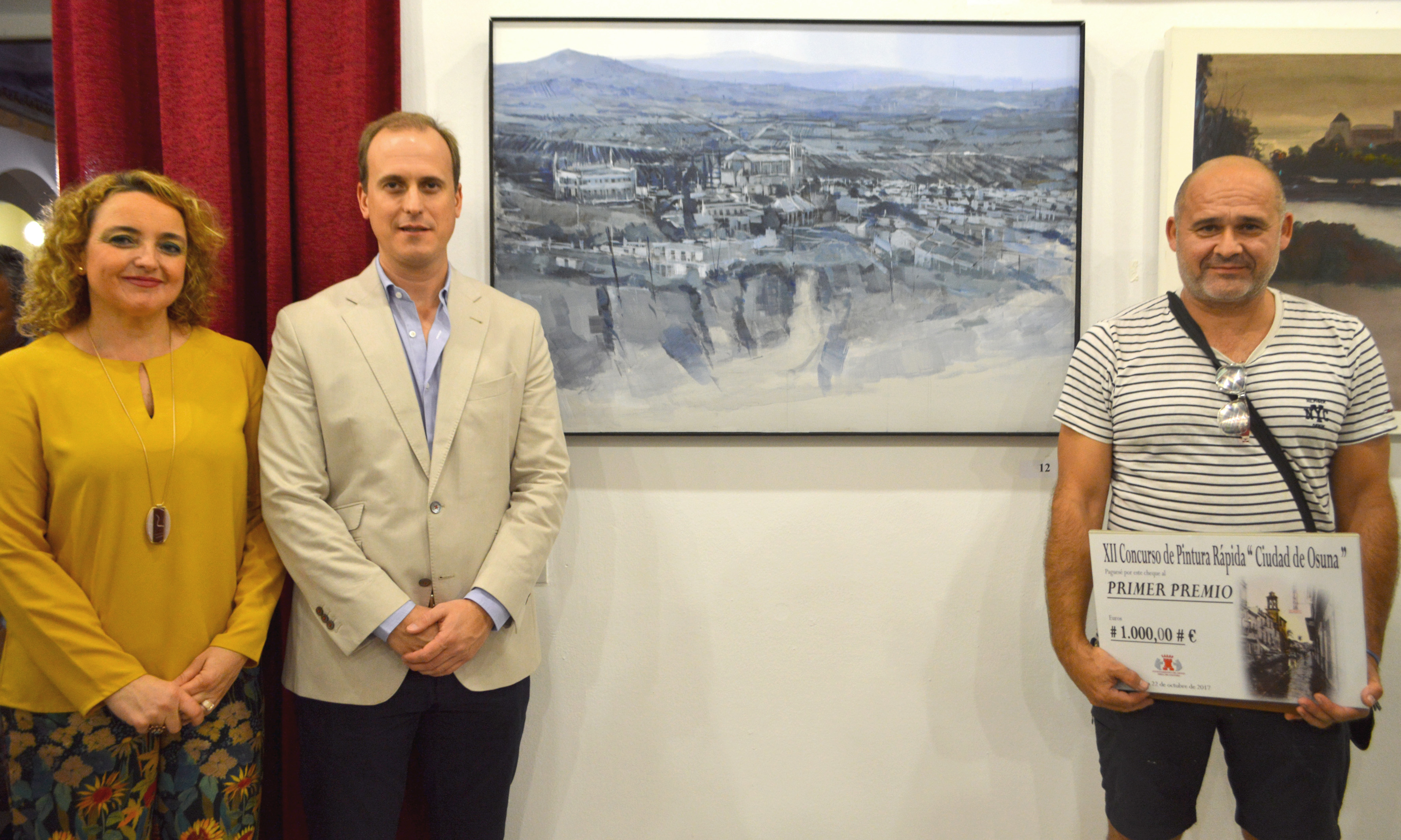 De la mano del delegado municipal de Cultura, Manuel Rodríguez, el ganador recibía este premio por valor de 1.000 euros a una obra que representa una panorámica general de Osuna desde la zona de Las Canteras. El segundo premio, dotado con 700 euros, ha sido para Francisco Luna Galván, de Ronda (Málaga), del que le ha hecho entrega la delegada municipal de Universidad, Yolanda García, y el tercero, dotado con 500 euros, para la pintora almeriense, Ana Sánchez Lucas, quien lo ha recibido también de manos del delegado municipal de Cultura.