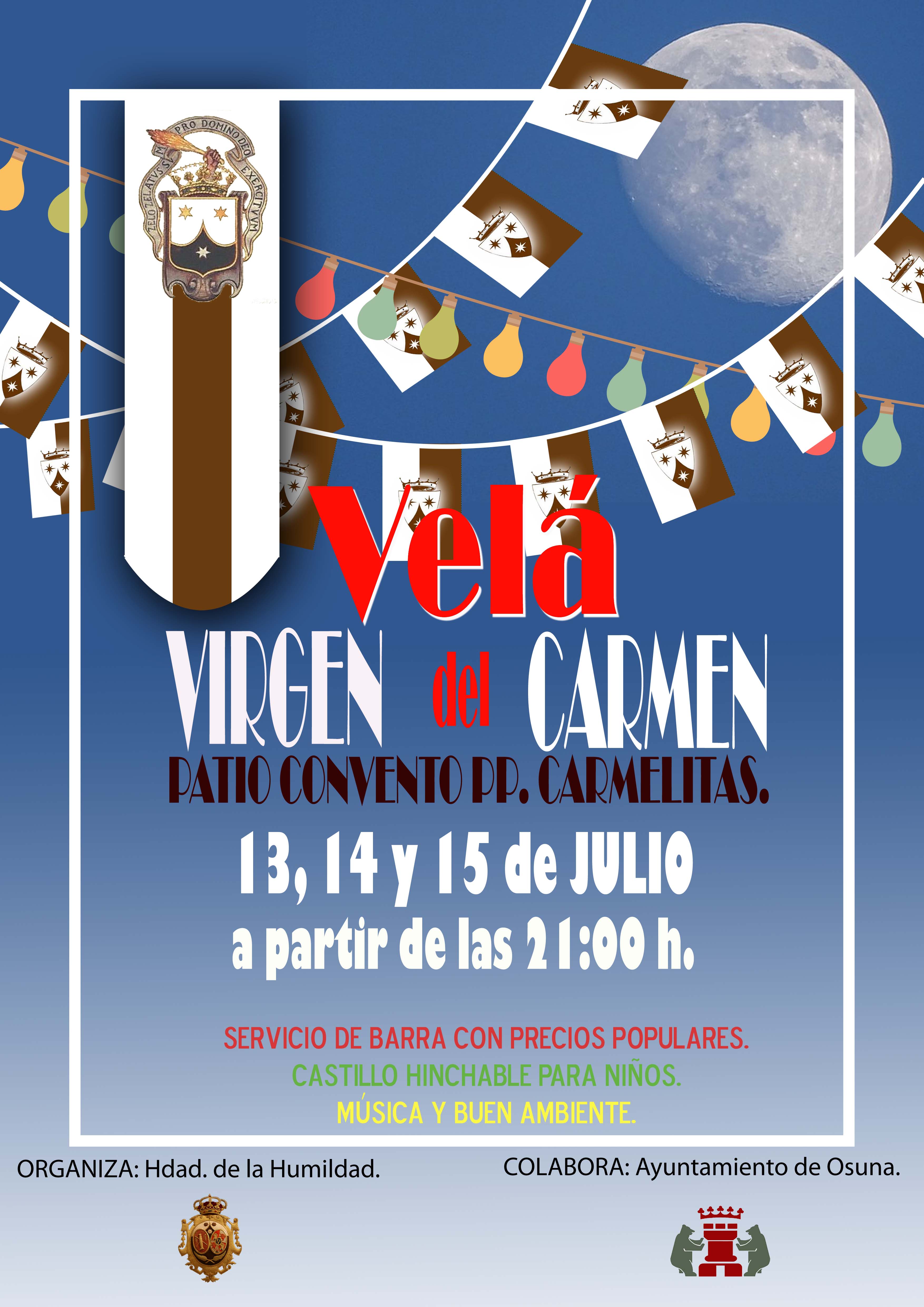 Fecha inicio Vie, 13/07/2018 - 21:00 Fecha fin Dom, 15/07/2018 - 14:10 Imágenes Ubicación Categoría evento Participación Ciudadana Mostrar en el carrusel de la sección No Más información http://www.osuna.es/es/actualidad/eventos/Vela-Virgen-del-Carmen/
