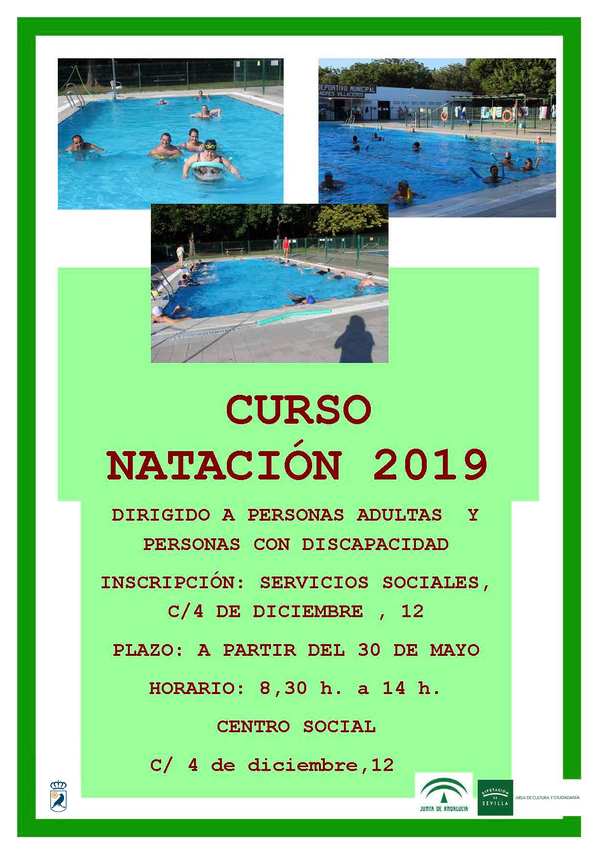 La Delegación de Igualdad y Bienestar Social pone en marcha, como cada año, los cursos de natación 2019 dirigidos a personas adultas y personas con discapacidad.