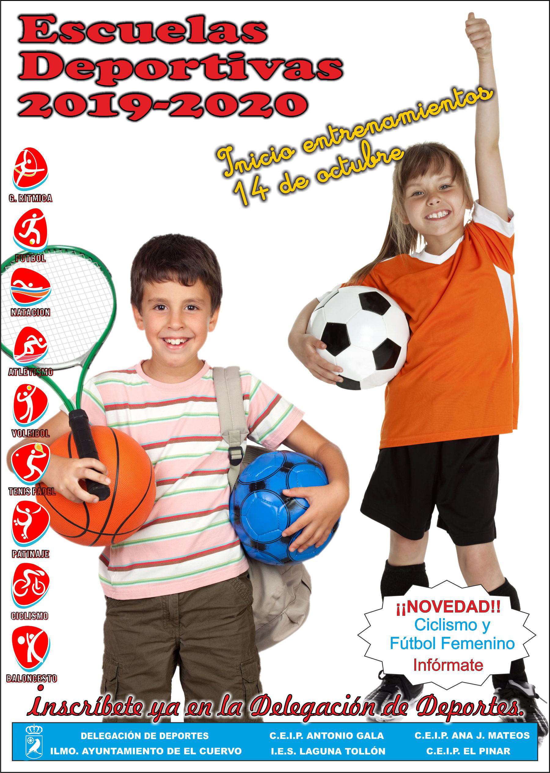 Comienza el calendario de las Escuelas Deportivas 2019-2020 en sus modalidades Municipales y Centros Educativos con el primer entrenamiento previsto para el lunes 14 de octubre. Este año se impartirán nueve disciplinas deportivas, dos de ellas por primera vez: ciclismo y fútbol femenino.