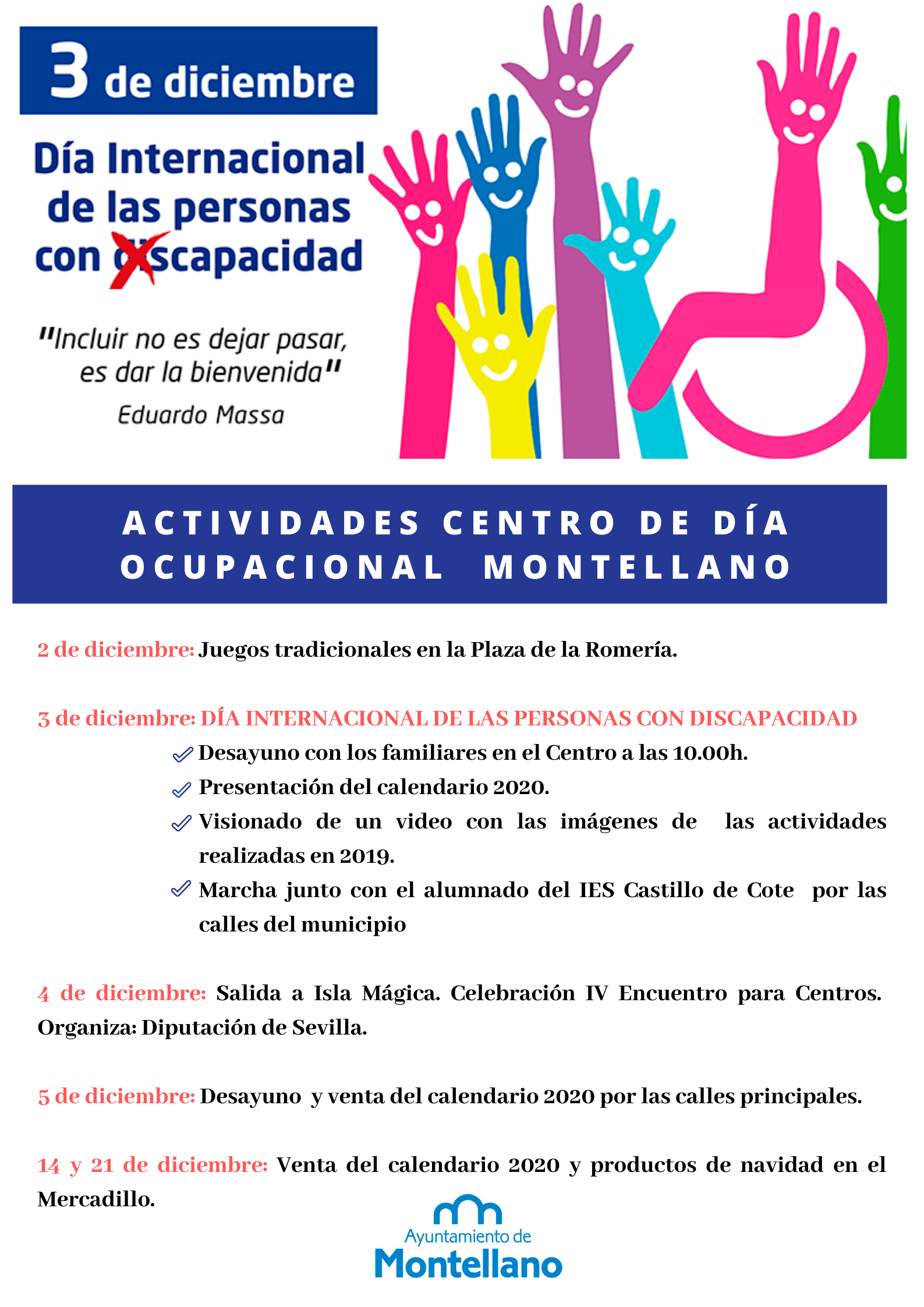 - 3 de diciembre: DÍA INTERNACIONAL DE LAS PERSONAS CON DISCAPACIDAD