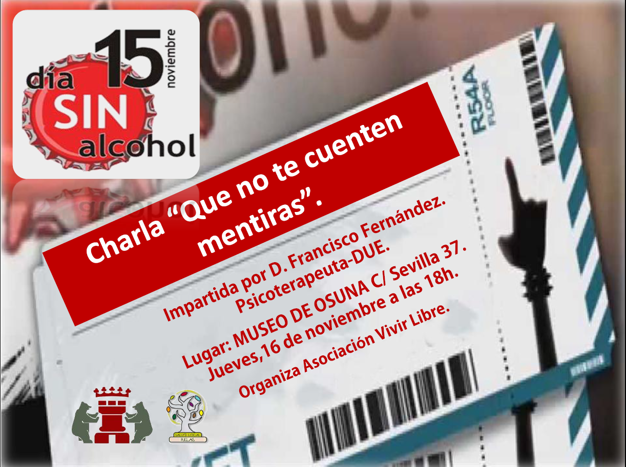 Con motivo del 15 de noviembre, Día Mundial sin Alcohol, desde el Ayuntamiento de Osuna, a través de la Mesa de Adicciones de la Red Local de Acción en Salud (RELAS), en la cual se encuentran representados todos los ámbitos que trabajan la prevención, como son, el ámbito educativo, las AMPAS, el Área Sanitaria de Osuna, la Guardia Civil, las asociaciones Vivir Libre, Cruz Roja, Asociación Española Contra el Cáncer, Centro de Tratamiento Ambulatoro, Grupo Scouts y el Programa Ciudades ante las Drogas, se han diseñado una serie de actividades encaminadas a la sensibilización y prevención del consumo de alcohol y sus riesgos, sobre todo, destinadas al colectivo de los jóvenes.