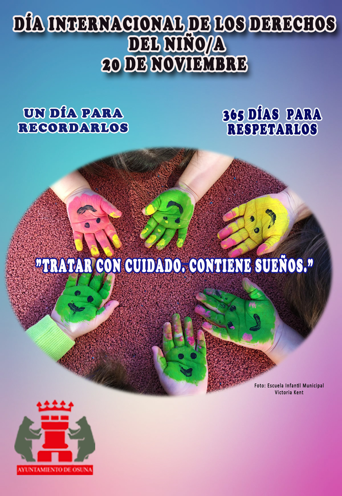 Con motivo del Día Mundial de la Infancia, que se conmemora el 20 de noviembre, desde el Ayuntamiento de Osuna se han organizado un conjunto de actividades coordinadas entre todas aquellas áreas municipales relacionadas con el mundo y los derechos de los niños y niñas, como son las delegaciones de Servicios Sociales, Educación, Cultura y Deporte.