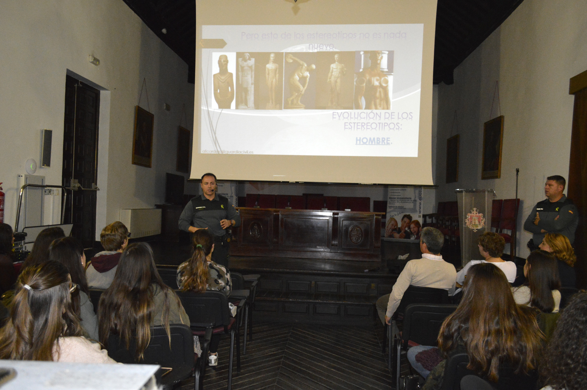El paraninfo de la Escuela Universitaria de Osuna ha sido la sede para desarrollar el taller "Actuación de la Guardia Civil ante la violencia de género", una actividad que se enmarca dentro del programa de actos que el Ayuntamiento de Osuna ha puesto en marcha esta semana para conmemorar el 25 de noviembre, Día Internacional contra la Violencia de Género y que han impartido los coordinadores del Plan Director de la Guardia Civil de Osuna.