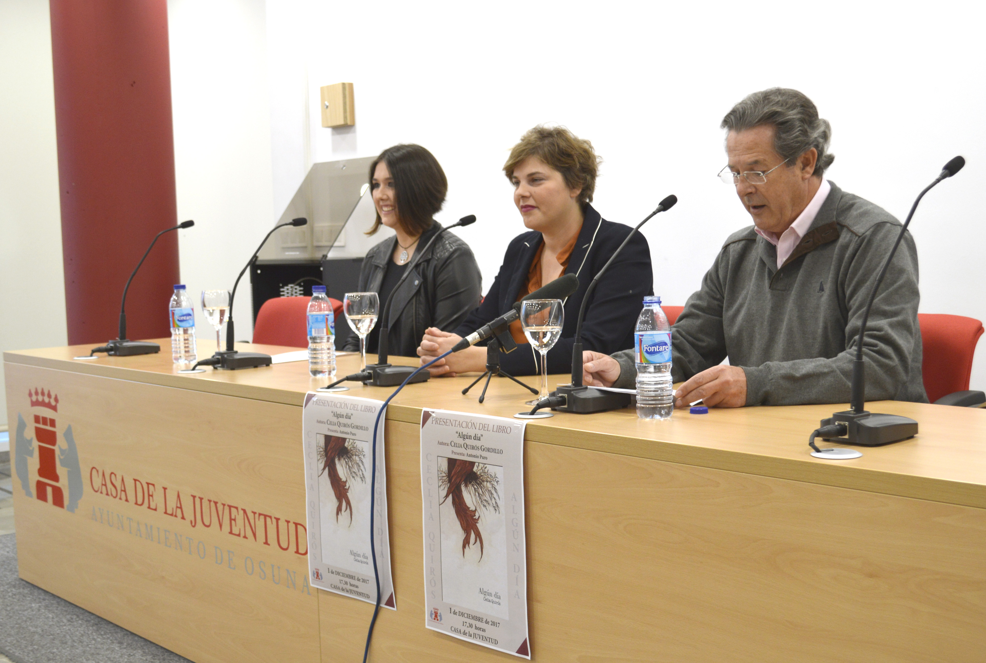 El acto estuvo presidido por la segunda teniente de alcaldesa y delegada municipal de Juventud del Ayuntamiento de Osuna, Asunción Bellido, y la autora fue presentada por Antonio Puro, profesor de Lengua y Literatura del IES Rodríguez Marín de Osuna, donde Celia Quirós cursó sus estudios de bachillerato siendo la escritora antigua alumna de dicho profesor en este centro.