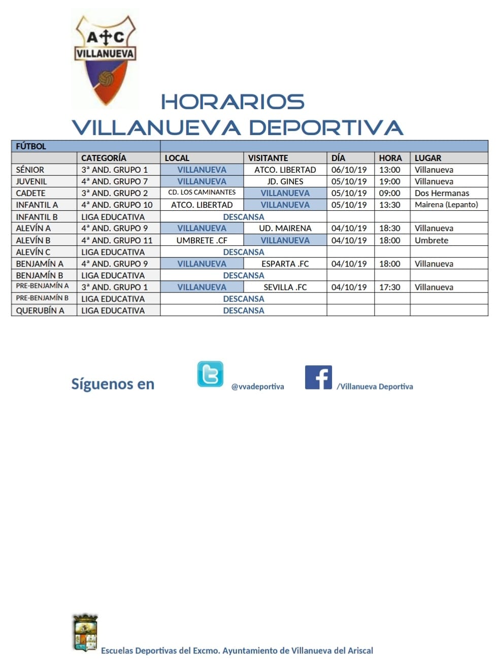 Imagen Ubicación Categoría noticia Deporte Mostrar en el carrusel de la sección No Fecha Vie, 04/10/2019 - 14:26 Más información http://www.villanuevadelariscal.es/es/actualidad/noticias/Partidos-para-esta-se…