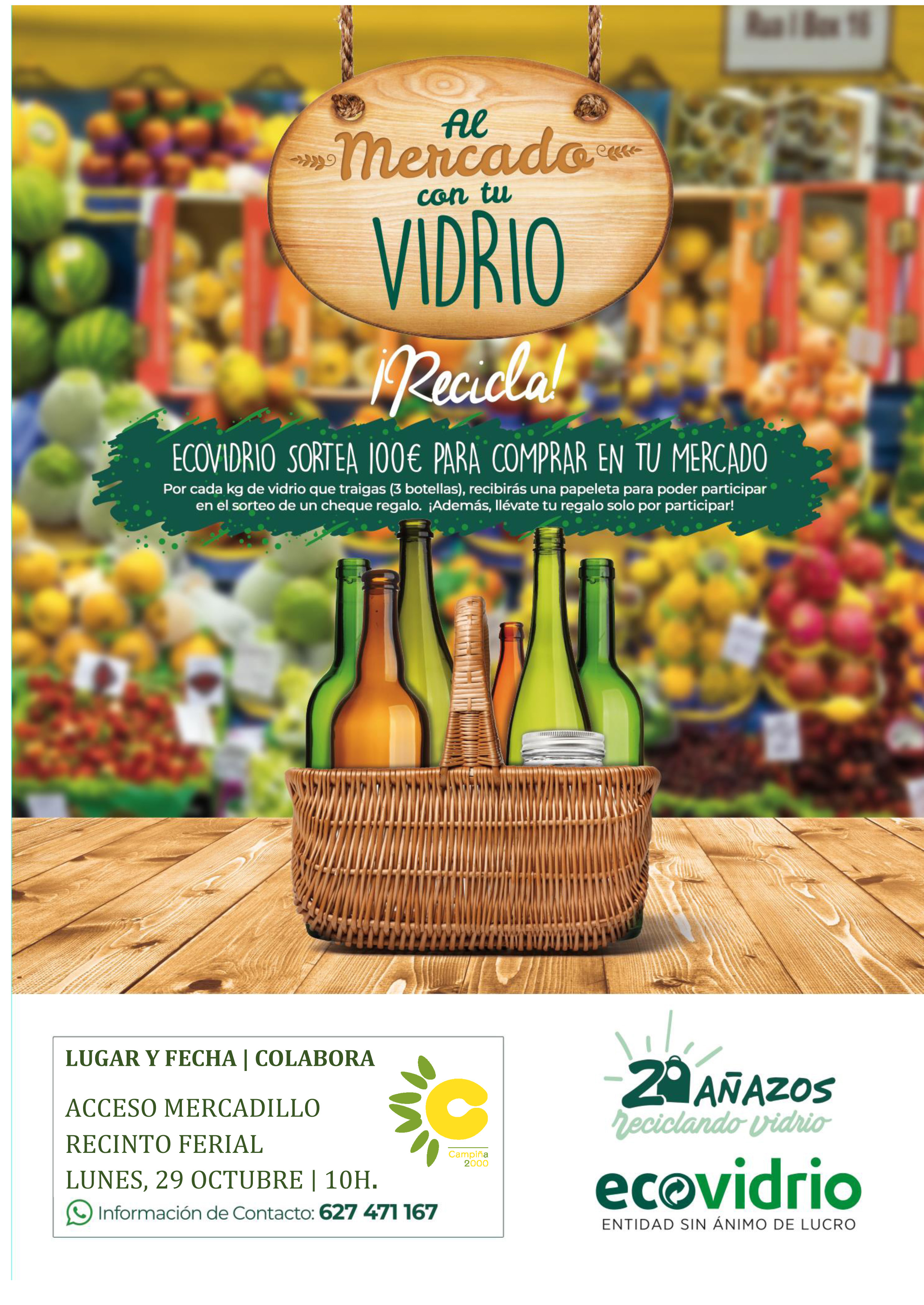 La campaña que se llevará a cabo el próximo lunes 29 se centrará en la realización de un concurso de recogida de vidrio, a través del cual por cada kilo de vidrio que el ciudadano entregue, se le dará una papeleta para participar en el sorteo de varios vales regalo para comprar productos en el mercadillo. Concretamente se entregarán 5 vales de 20 euros cada uno. Teniendo más posibilidades de ganar quien más vidrio aporte, por lo que animamos a todos los vecinos y vecinas de Osuna a guardar la mayor cantidad de vidrio, para conseguir la mayor cantidad de papeletas y obtener estos "vales de regalo"