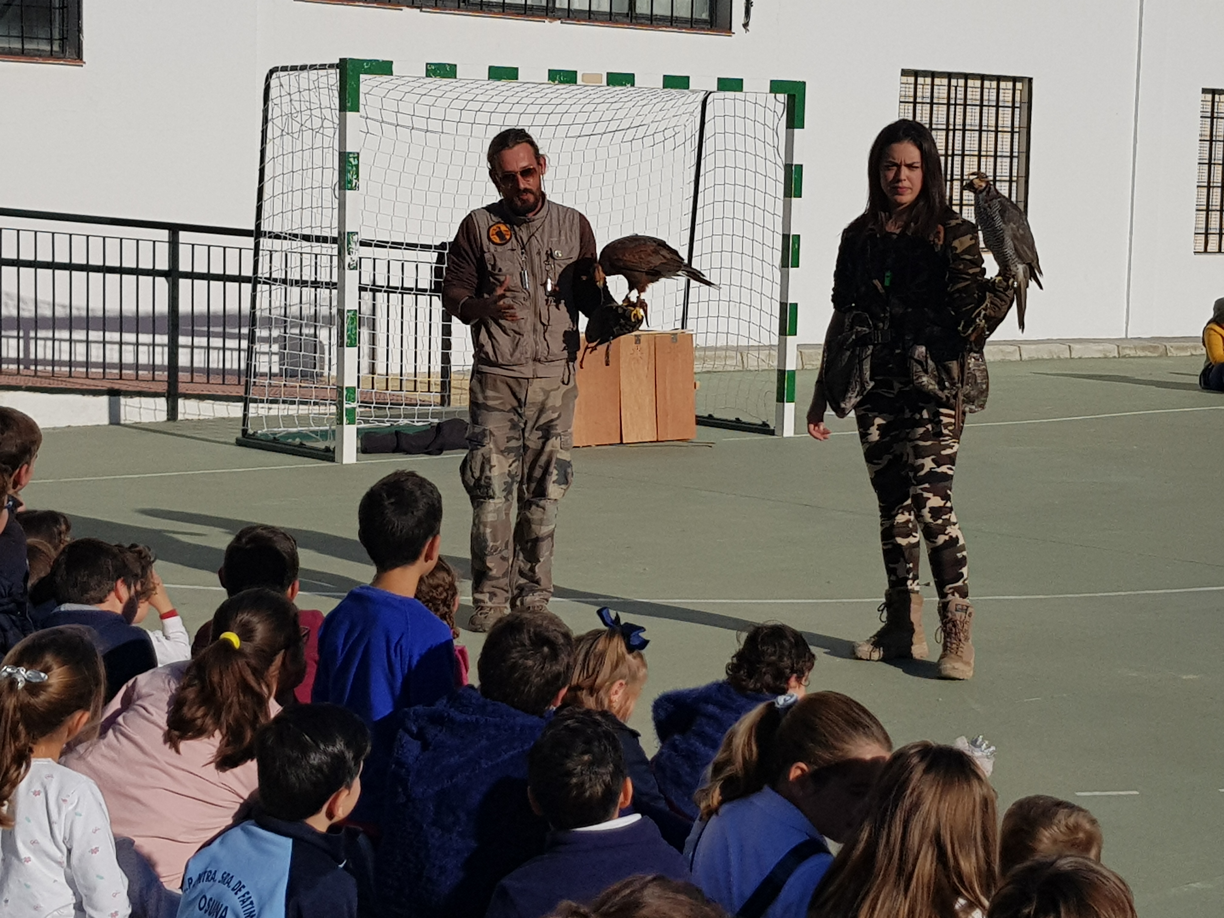 Con motivo de la celebración de los Campeonatos de España de Cetrería, esta mañana, los escolares de los centros de Educación Infantil y Primaria de Fátima y de Rodríguez Marín de Osuna han podido disfrutar de una exhibición cetrera, conocer más de cerca estas aves y observar la destreza de las mismas en su vuelo y la maestría de sus dueños. En esta visita ha estado el delegado municipal de Deportes, Benito Eslava, quien ha comentado que, con esta actividad, se inicia la programación de los Campeonatos de España de Cetrería que se disputan en Osuna hasta el próximo 8 de diciembre.