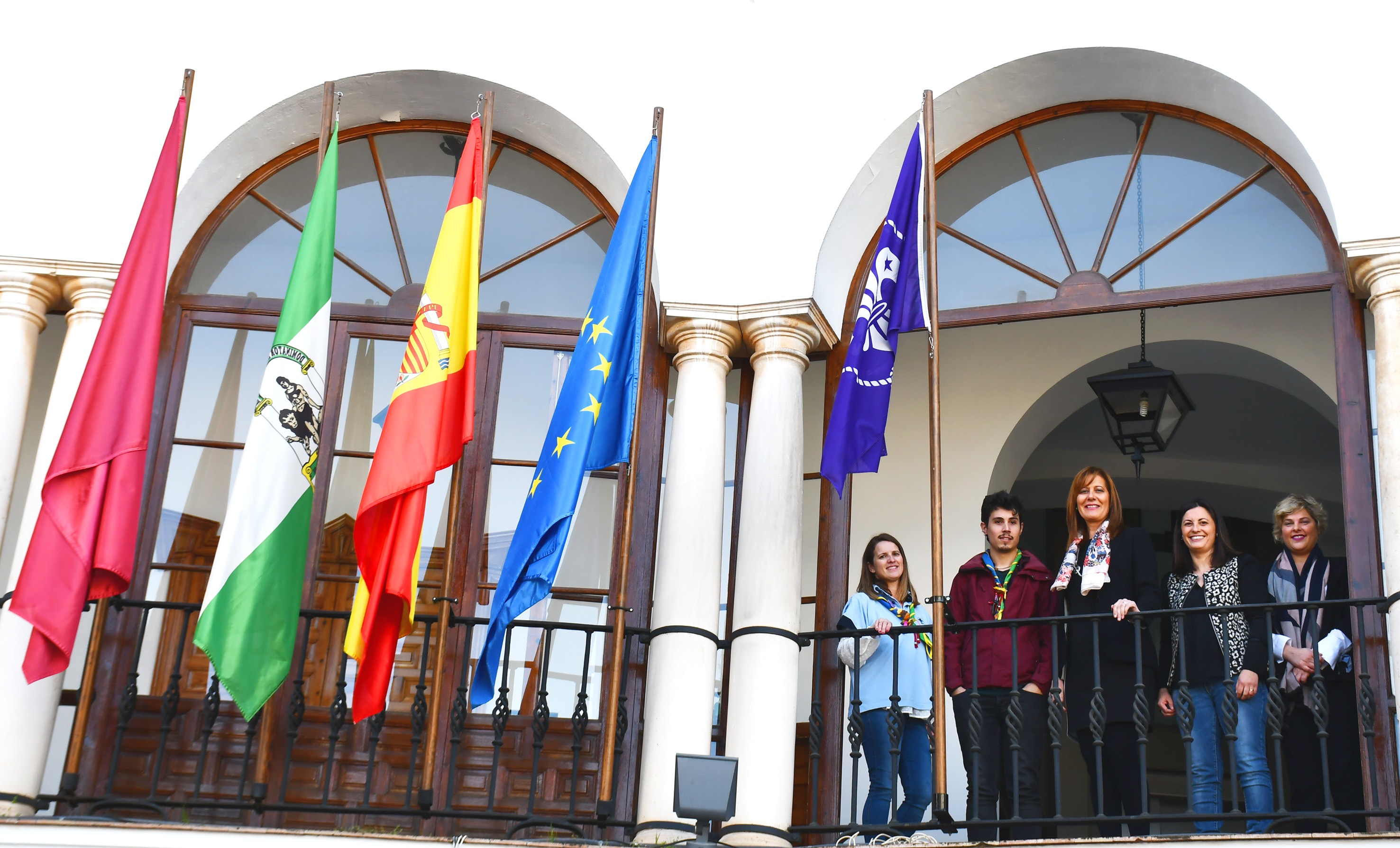 La fachada principal del Ayuntamiento de Osuna luce hoy viernes, 22 de febrero, la bandera del Movimiento Scout, con motivo del día de su fundador, Baden-Powell, mes de nacimiento también de su esposa Olave Saint Claire. En el acto de colocación de la bandera han estado presentes la alcaldesa de Osuna, Rosario Andújar, y a las delegadas municipales de Bienestar Social y de Juventud, Brígida Pachón y Asunción Bellido, respectivamente, junto con dos representantes de este movimiento a nivel local, Isabel Mª Sánchez y Manuel Rodríguez.