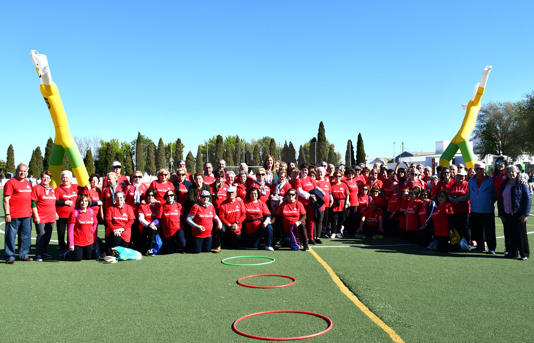 Dentro de los actos programados con motivo de la celebración de la Semana de la Salud, el Ayuntamiento de Osuna ha organizado hoy jueves, 11 de abril, unas jornadas deportivas y culturales para los mayores de la localidad, y donde participan además otros nueve municipios de la comarca. Un total de más de 400 mayores que se han dado cita desde primeras horas de esta mañana en el polideportivo municipal de Osuna.