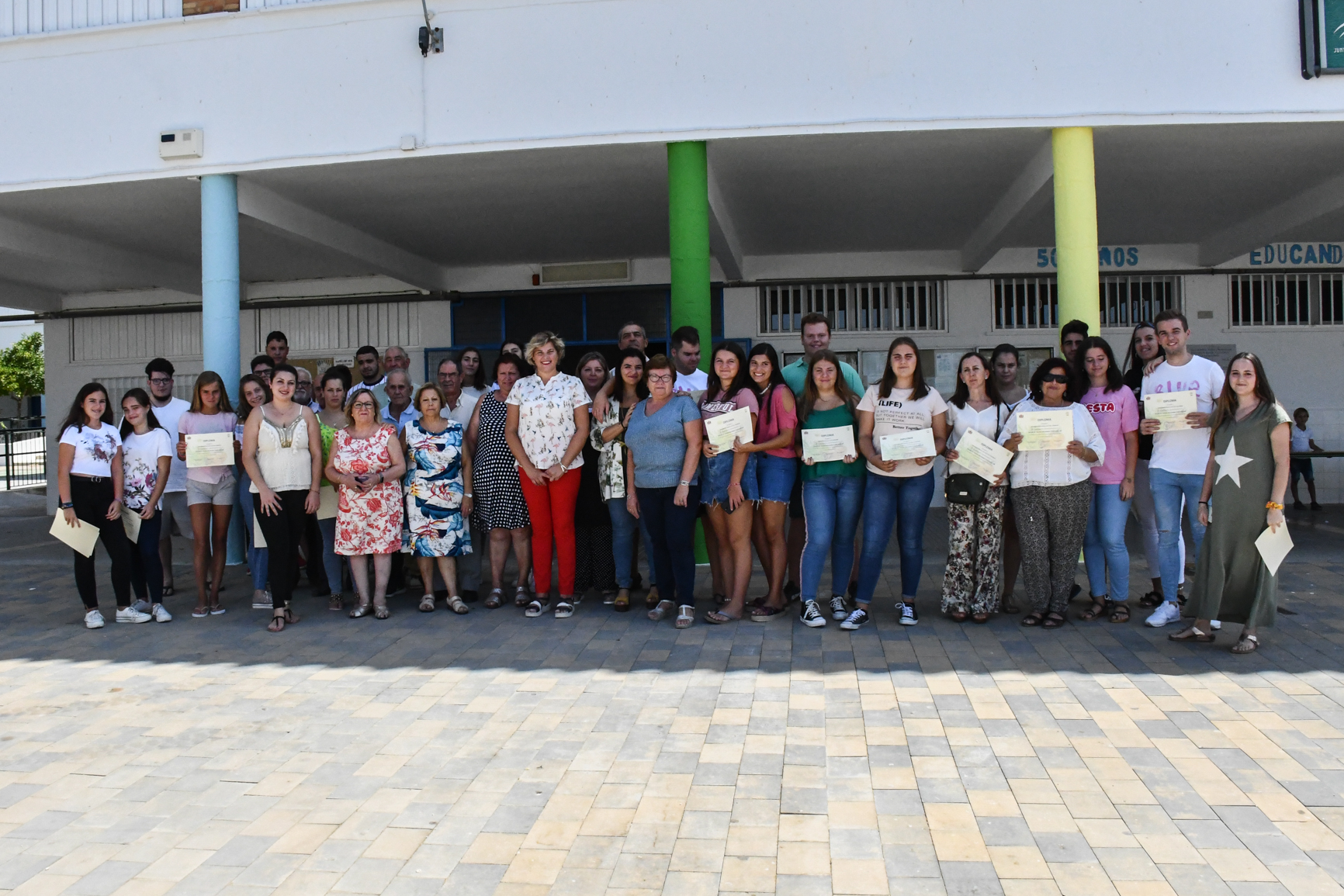 La delegada de Juventud del Ayuntamiento de Osuna, Ana María Lebrón, junto a la delegada municipal de Participación Ciudadana, Asunción Bellido, ha clausurado este mediodía una nueva edición de talleres de cocina saludable para jóvenes y para mayores de 35 años, que se han impartido durante todo el verano en el Centro de Educación de Infantil y Primaria "Rodríguez Marín".