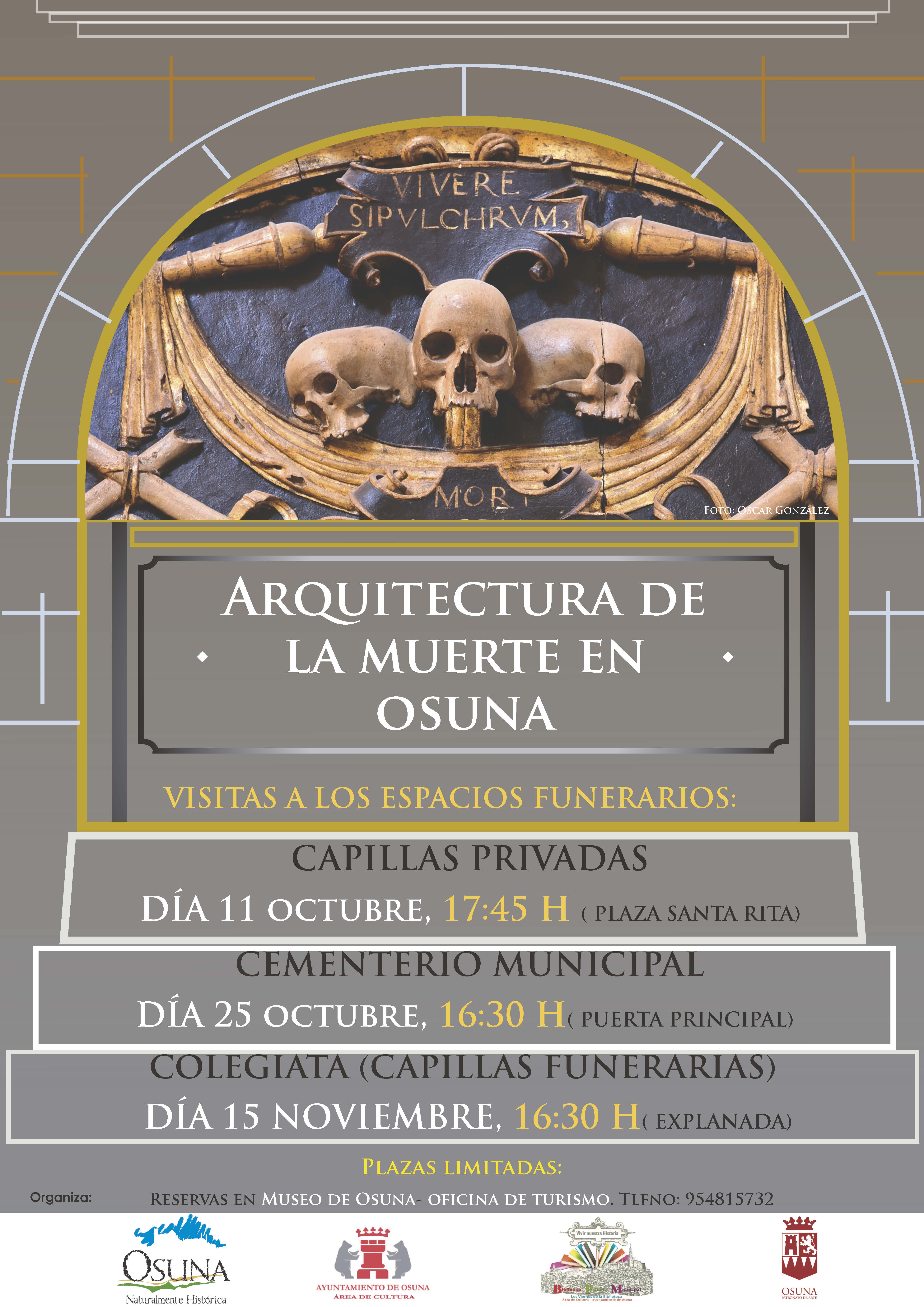 Bajo el nombre de "Arquitectura de la muerte en Osuna. Visita a los espacios funerarios" se pretende mostrar otra forma de entender la festividad de todos los difuntos, por lo que se trata de ofrecer al visitante, local o foráneo, un recorrido histórico y cultural por los diferentes espacios funerarios de Osuna.