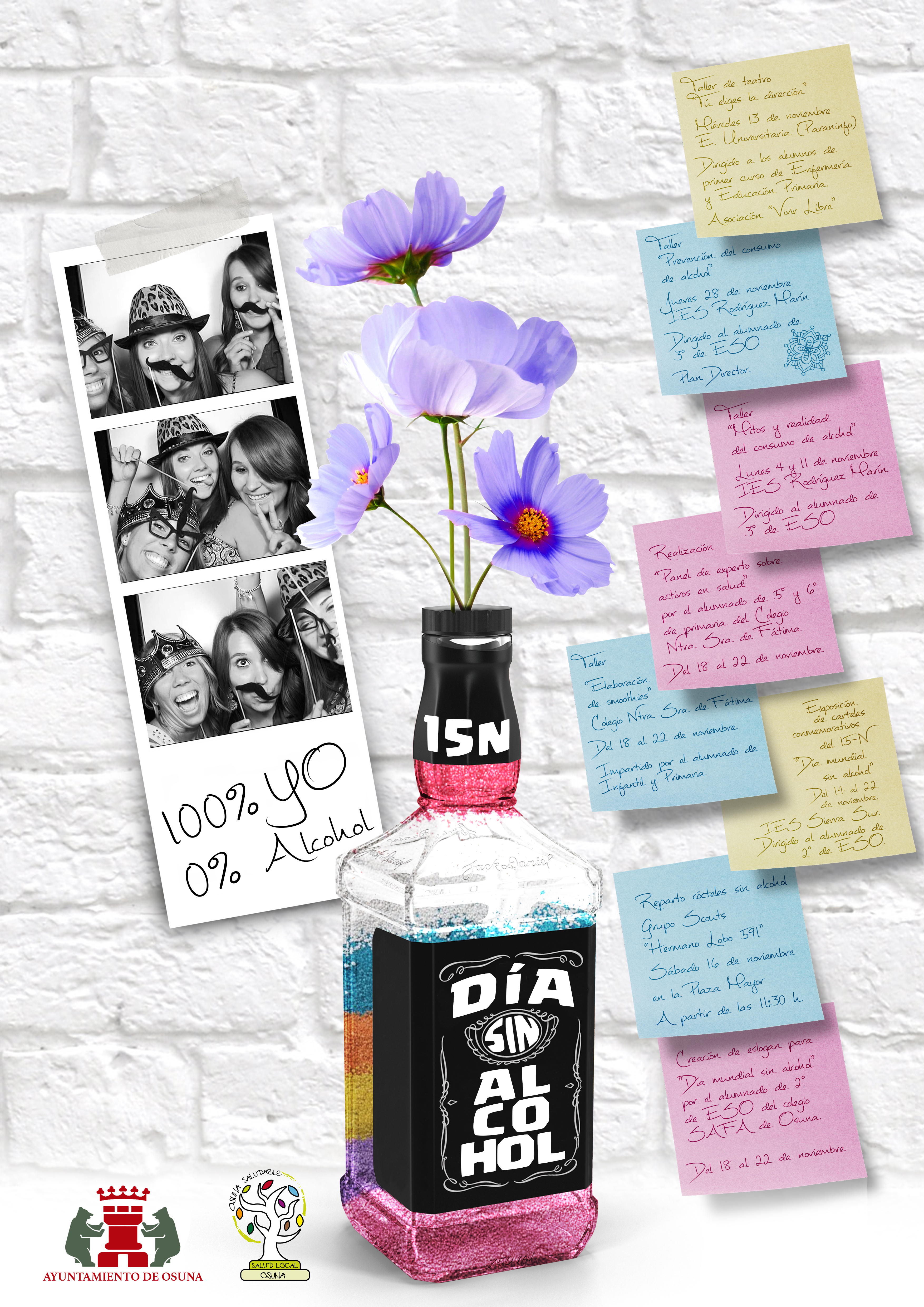 Con motivo del Día Mundial Sin Alcohol que se celebra el 15 de noviembre, desde el Ayuntamiento de Osuna, junto con todos los integrantes de la Mesa de Prevención, en la que se encuentran representados todos los ámbitos que trabajan en esta materia, como son el ámbito educativo, el sanitario, los cuerpos de seguridad, las asociaciones y el propio ayuntamiento, se ha organizado una nueva campaña educativa con un conjunto de actividades orientadas a reforzar la prevención ante esta adicción.