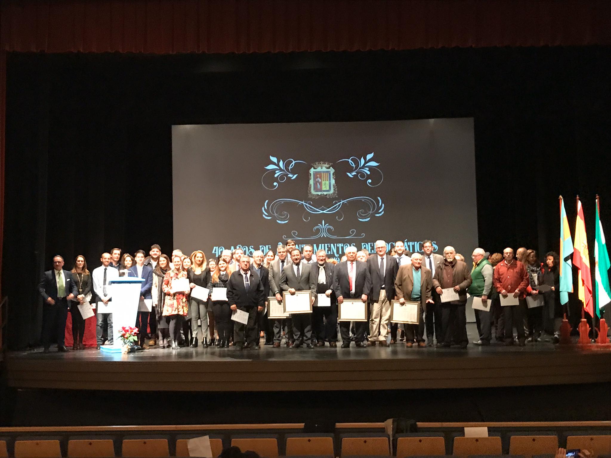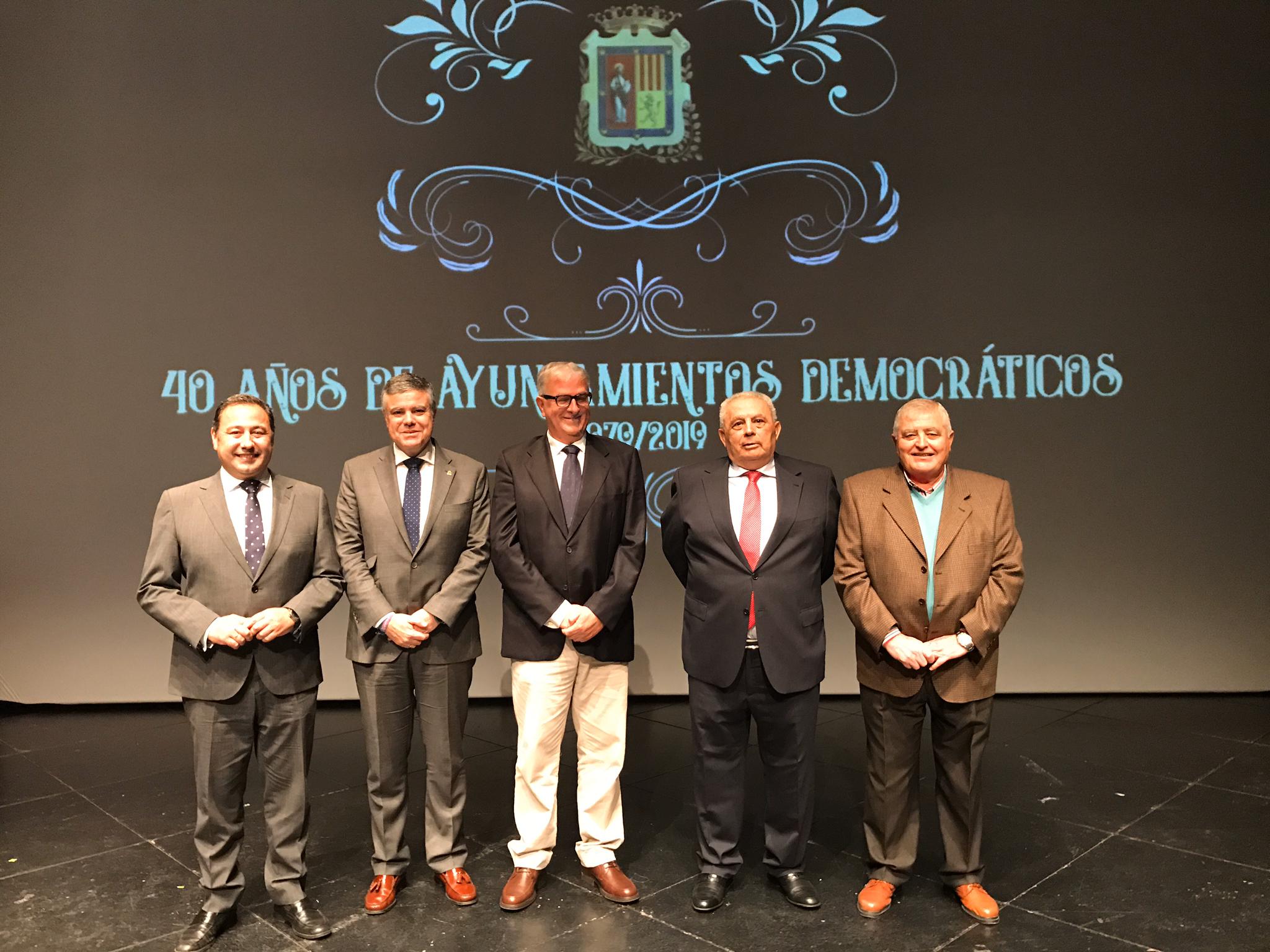 El Teatro de la Villa del Conocimiento y las Artes acogió ayer un acto institucional de homenaje a los alcaldes y concejales de todas las corporaciones municipales, por el 40º aniversario de los Ayuntamientos Democráticos.