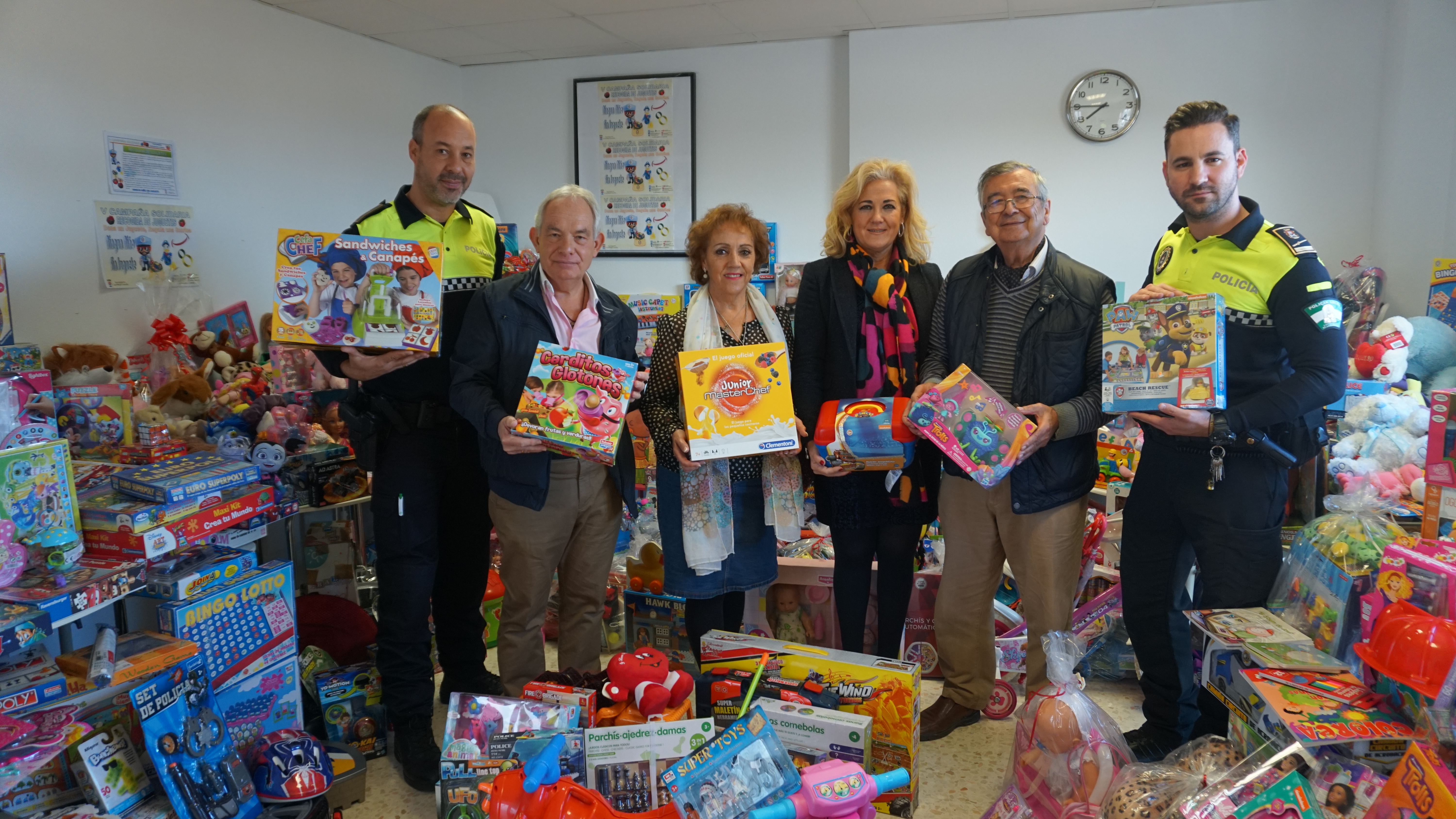 La campaña solidaria 'Ningún niño sin juguete', impulsada por la Policía Local de Castilleja de la Cuesta, ha cosechado un nuevo éxito en esta V edición. Empresas locales y vecinos y vecinas han donado decenas de juguetes nuevos para que ningún niño o niña se quede, estas Navidades, sin su sorpresa.