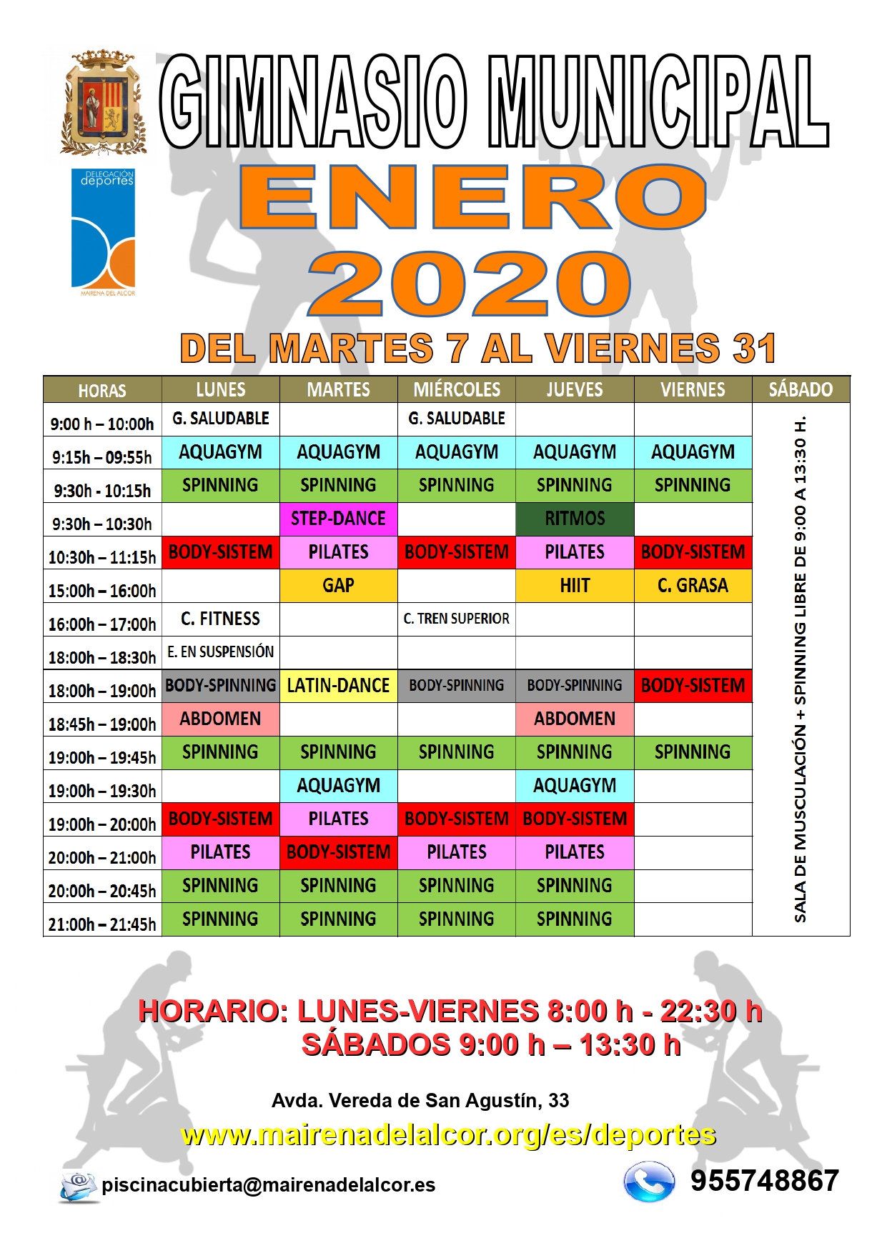 Imagen Imágenes Ubicación Categoría noticia Deportes Mostrar en el carrusel de la sección No Fecha Lun, 30/12/2019 - 09:57 Más información http://www.mairenadelalcor.es/es/actualidad/noticias/ENERO-EN-EL-GIMNASIO-MUNIC…